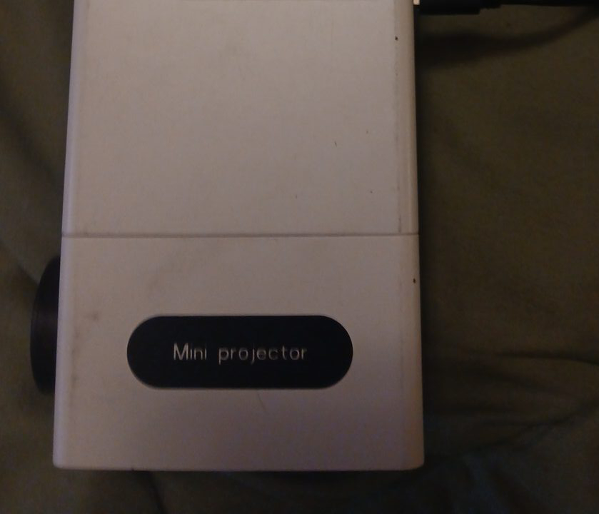Selling a mini projector! It is white in color. It's in used condition and may have some signs of wear.