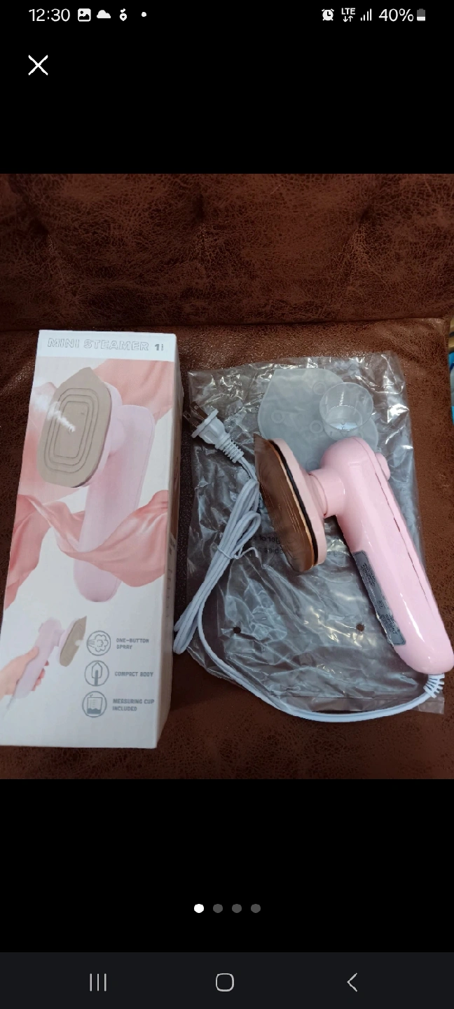40mini steamer that's perfect for travel or quick touch-ups! It features a one-button spray and a compact body, making it super easy to use and store. A measuring cup is included too! Comes with the original box