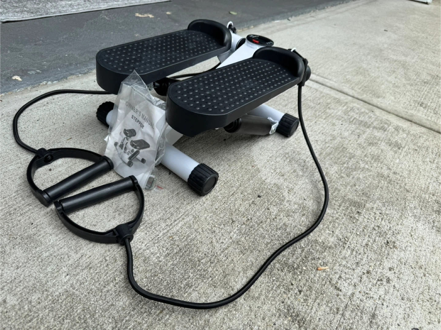 Selling a mini stepper that's great for a quick workout at home! It comes with resistance bands to add some arm exercises to your routine. Also includes the owner's manual