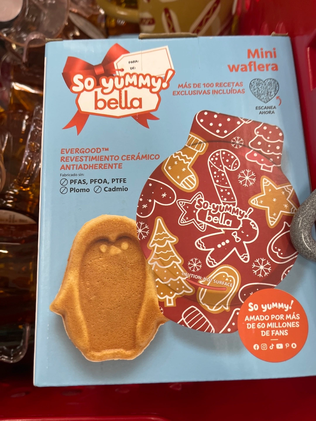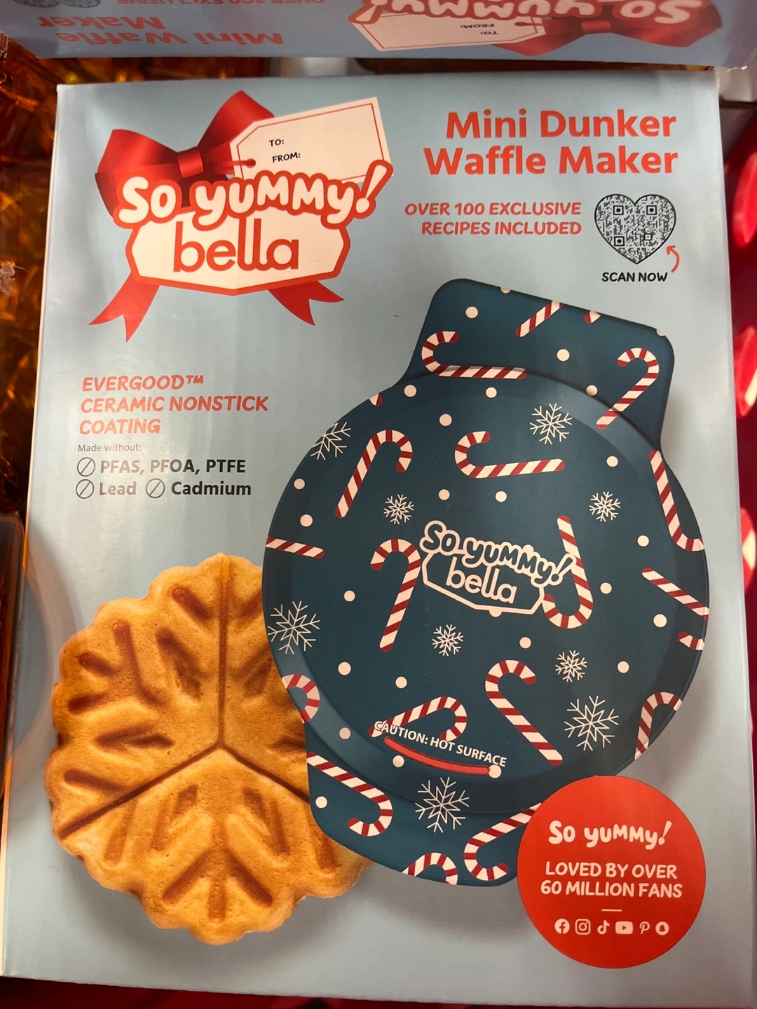 Mini waffle maker. Over 100 exclusive recipes included. Evergood ceramic nonstick coating. Made without PFAS, PFOA, PTFE, lead, or cadmium.