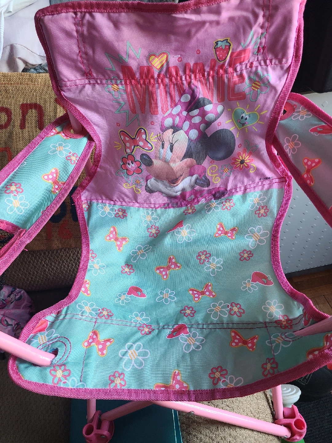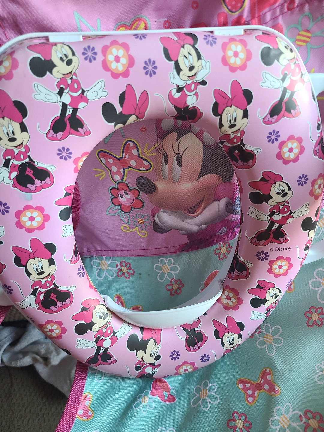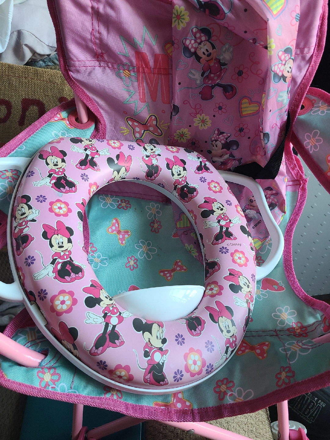 For sale. 1 Minnie Mouse Toilet Training Seat plus separate Minnie Mouse folding chair for Toddler or Child Folding chair with cup or bottle holder.