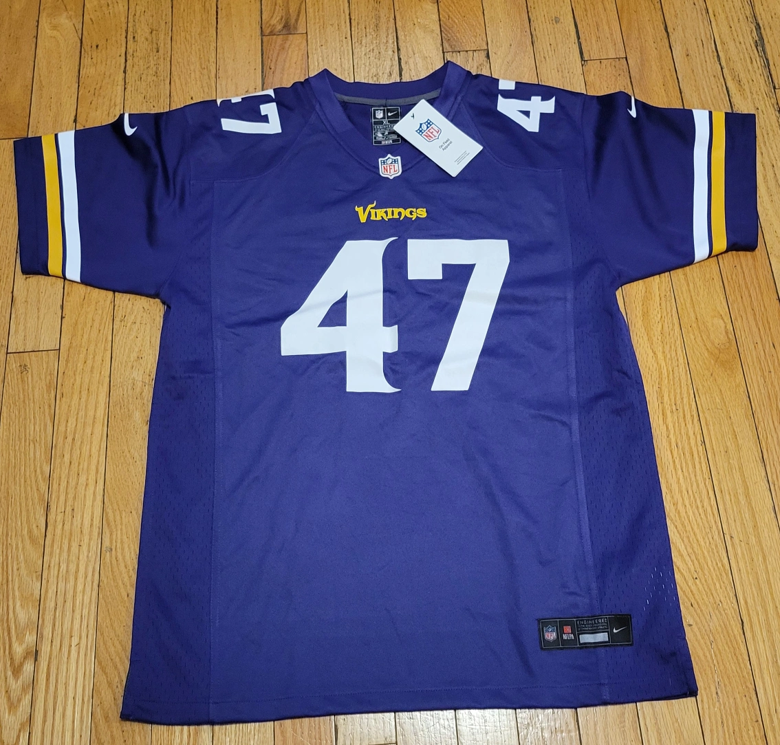 584Selling a Minnesota Vikings NFL jersey with the number 47 and the name 'Jutz' on the back! It's a size XL and made of 100% polyester. The jersey is in great condition and ready for a new fan!