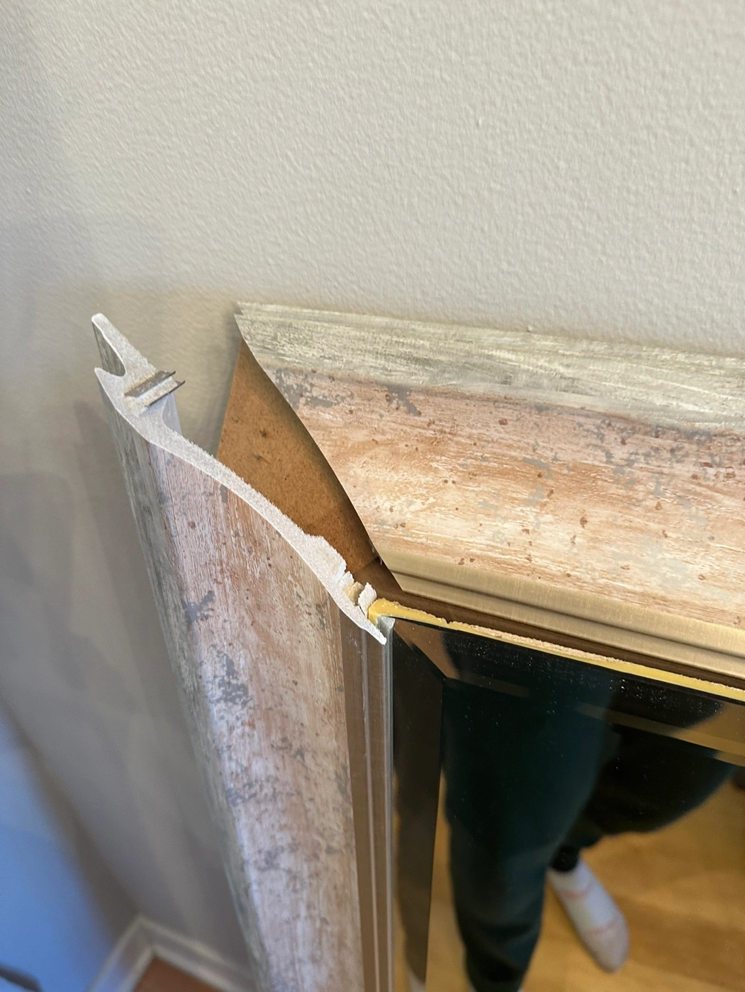The frame broke while I was trying to hang it up š. I donāt have the time or patience to fix it but if you do itās yours for free. Mirror is in perfect condition.
