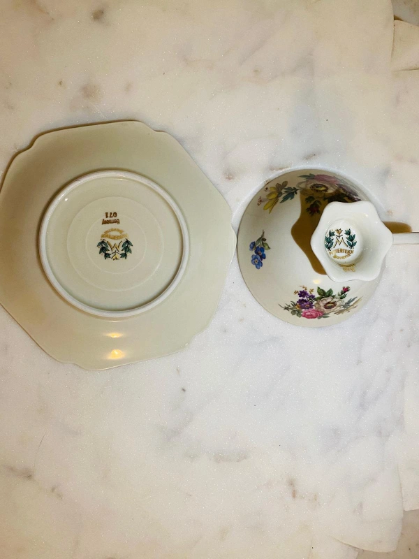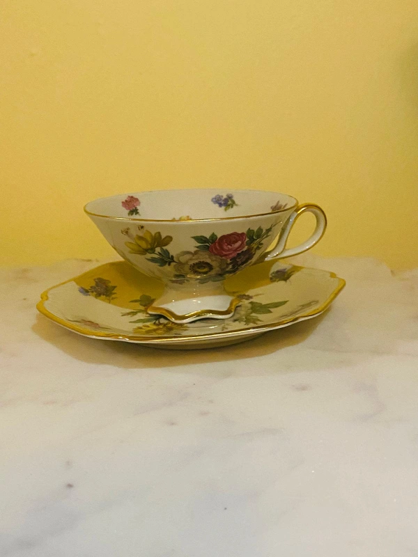 26Beautiful Mitterteich Bavaria tea cup and saucer set from Germany. The set features a delicate floral design with gold trim. Perfect for tea lovers or as a decorative piece!