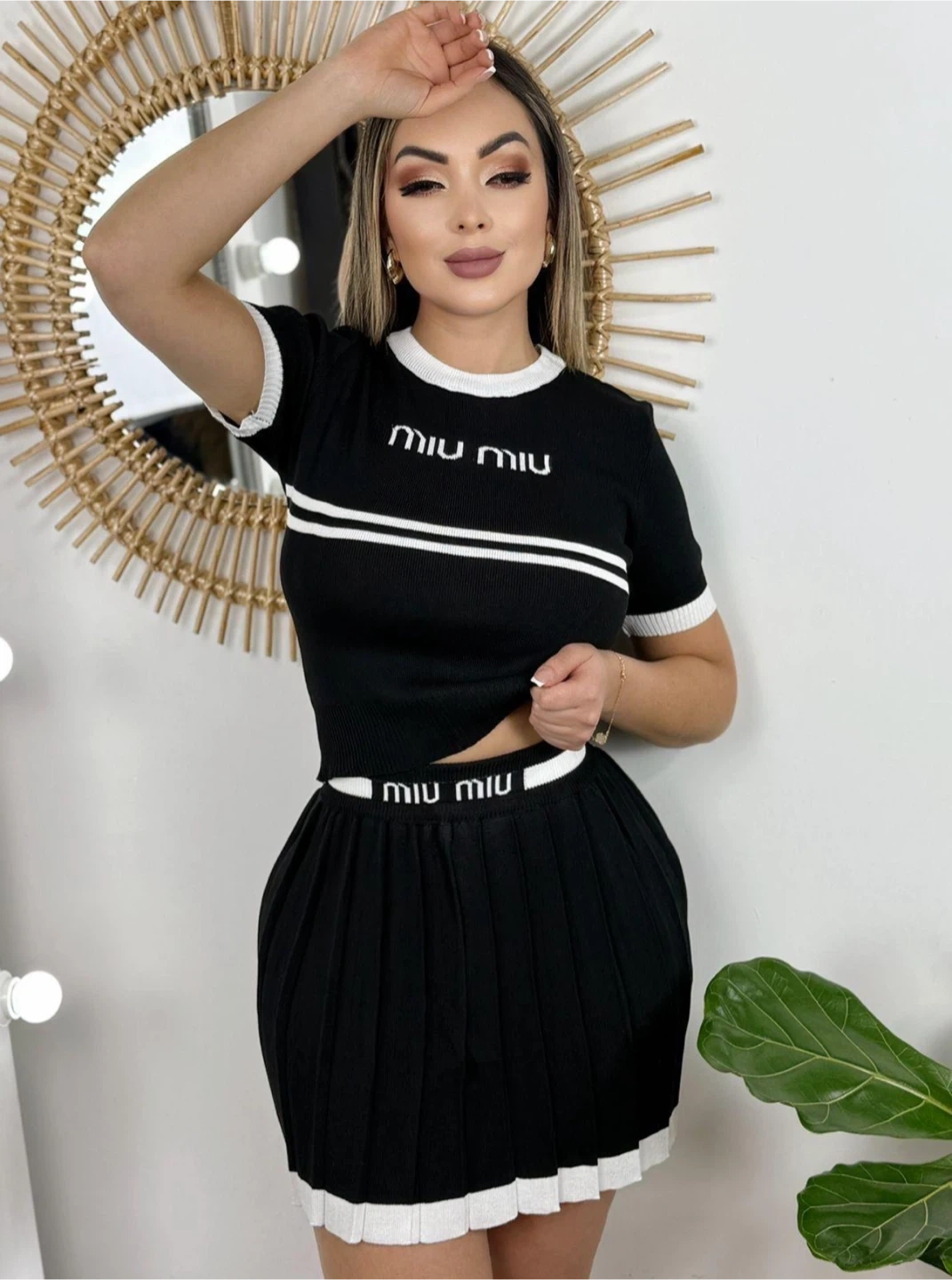 Selling a Miu Miu black skirt and top set. The set features white accents on the top and skirt. Great condition!