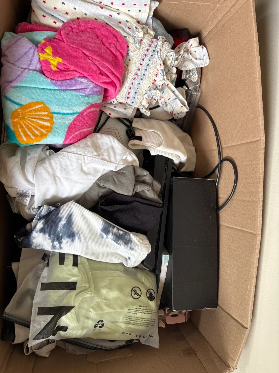 81Free box with some clothing for kids/ two PlayStation 4 no remotes . The PlayStations work but u can’t play it has two games stuck inside / there’s also so games that are in good condition. Everything is free