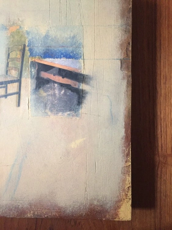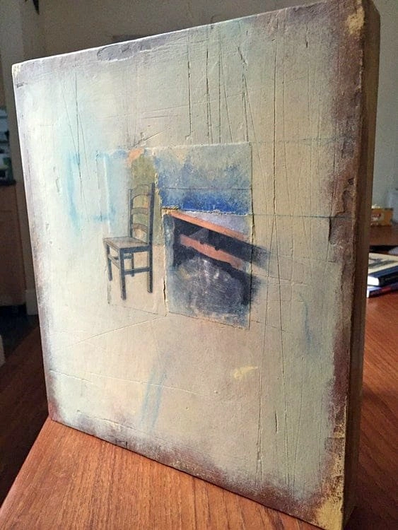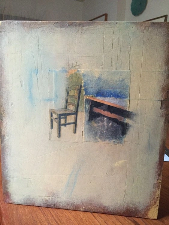 Mixed Media Collage Acrylic Painting on wood. measures 8x10