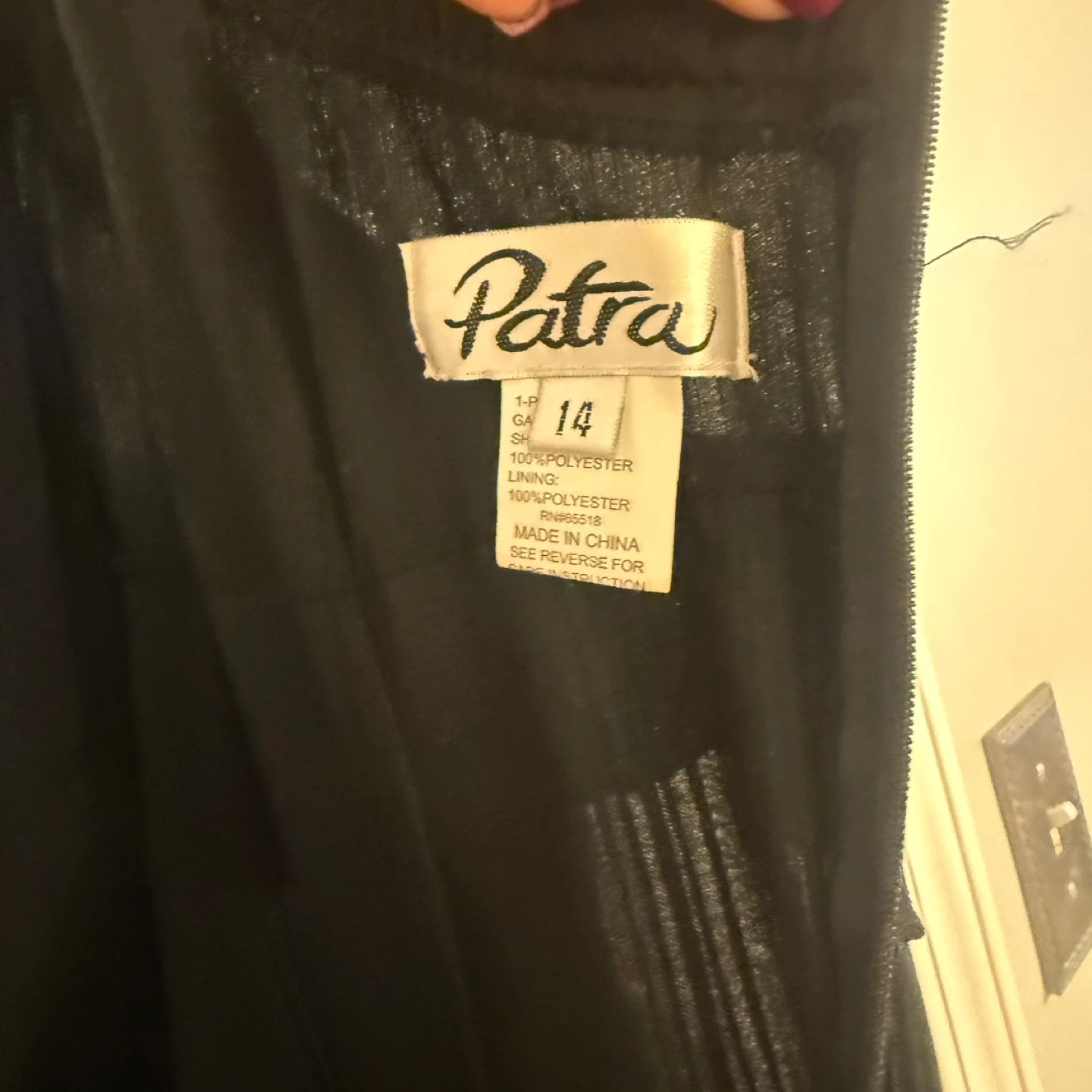 Selling a beautiful black Patra dress in size 14. It's made of 100% polyester for both the shell and the lining. Perfect for a special occasion or a night out!