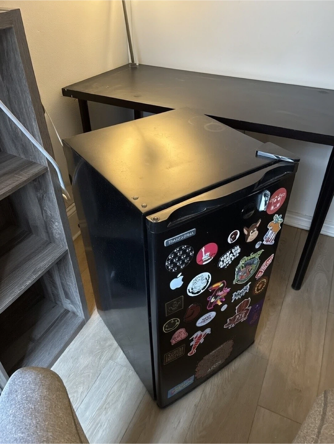 Black Mini Fridge with Stickers