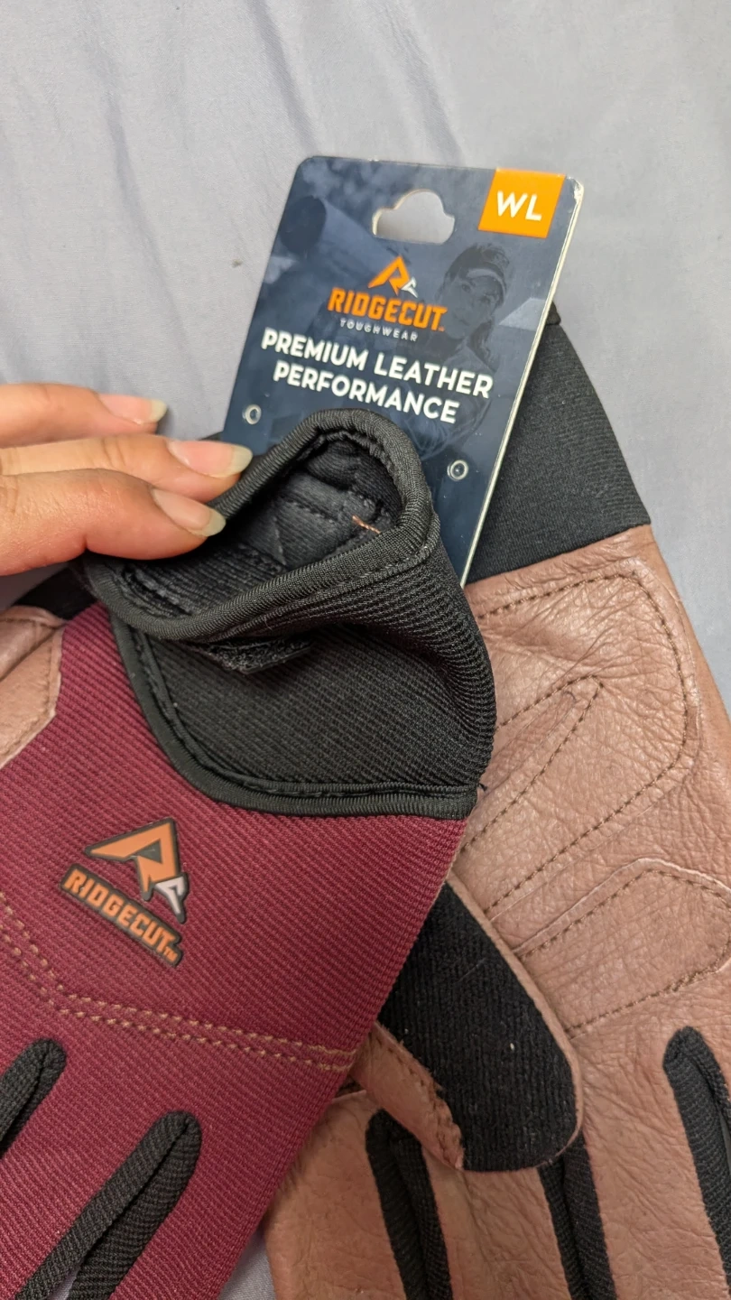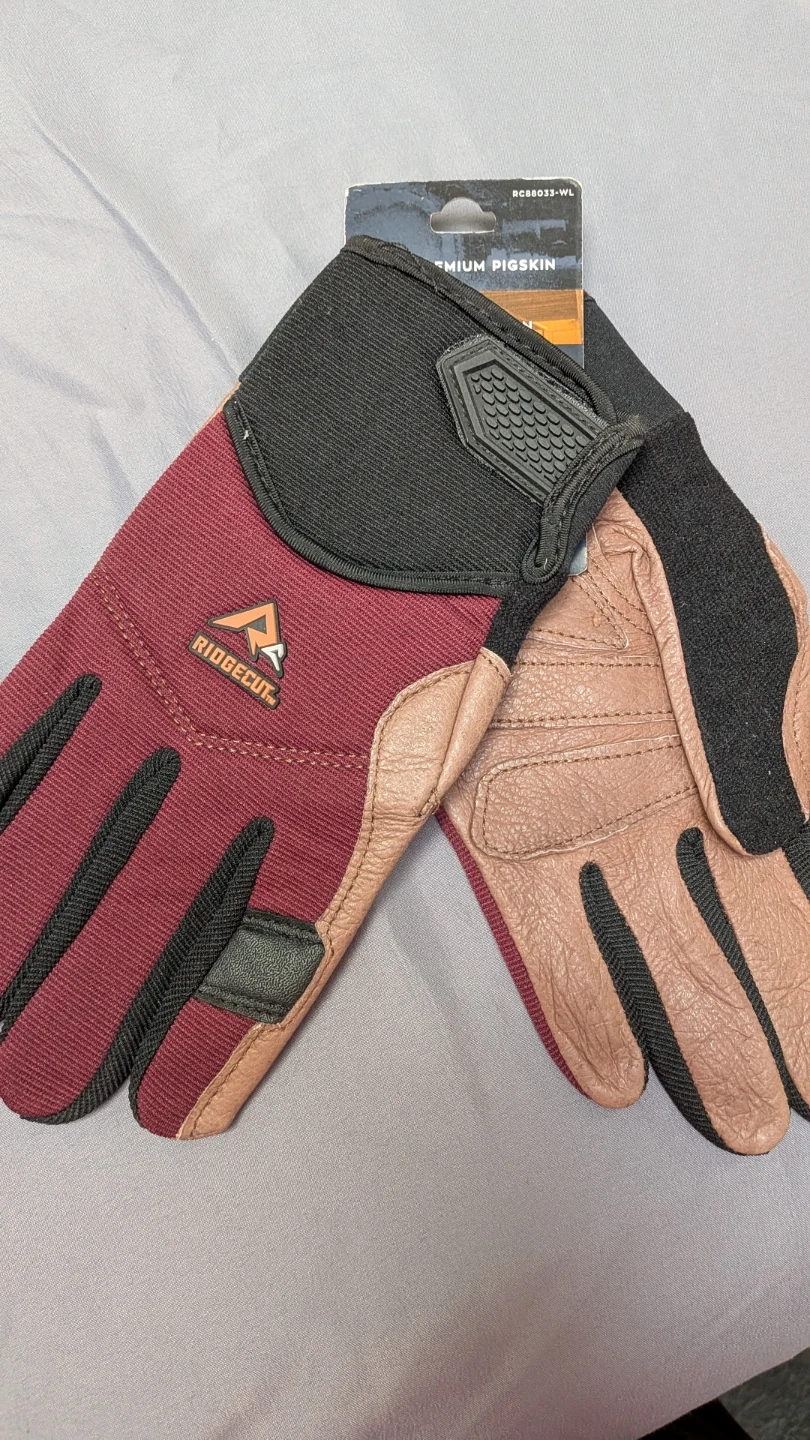 Ridgecut Premium Leather Performance gloves. Features pigskin leather palms and fabric backs. Size WL.