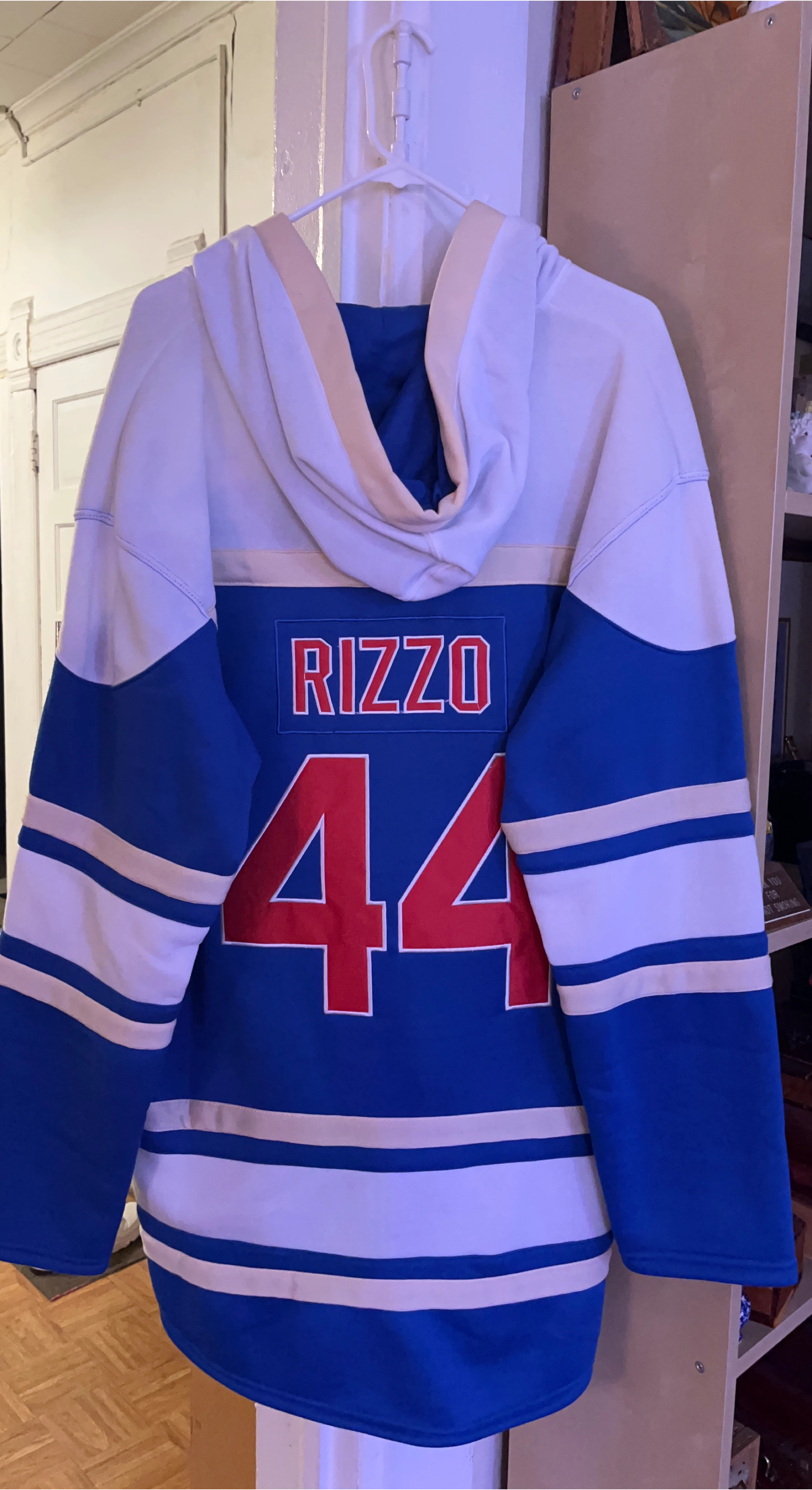 65Selling a Chicago Cubs Rizzo #44 hockey hoodie in size XXXL. It's in great condition and ready for a new home! Features the classic Cubs logo and Rizzo's number on the back