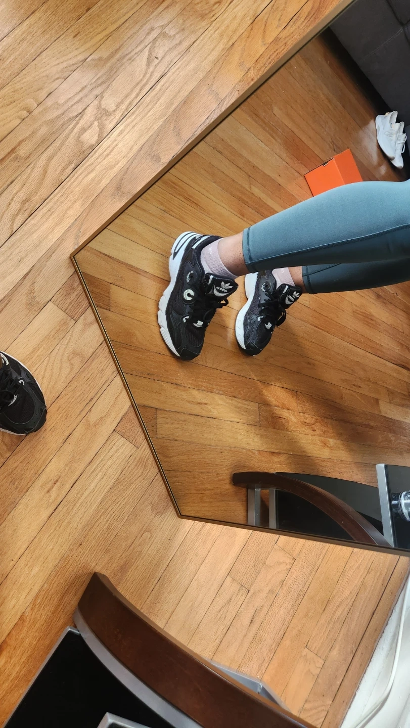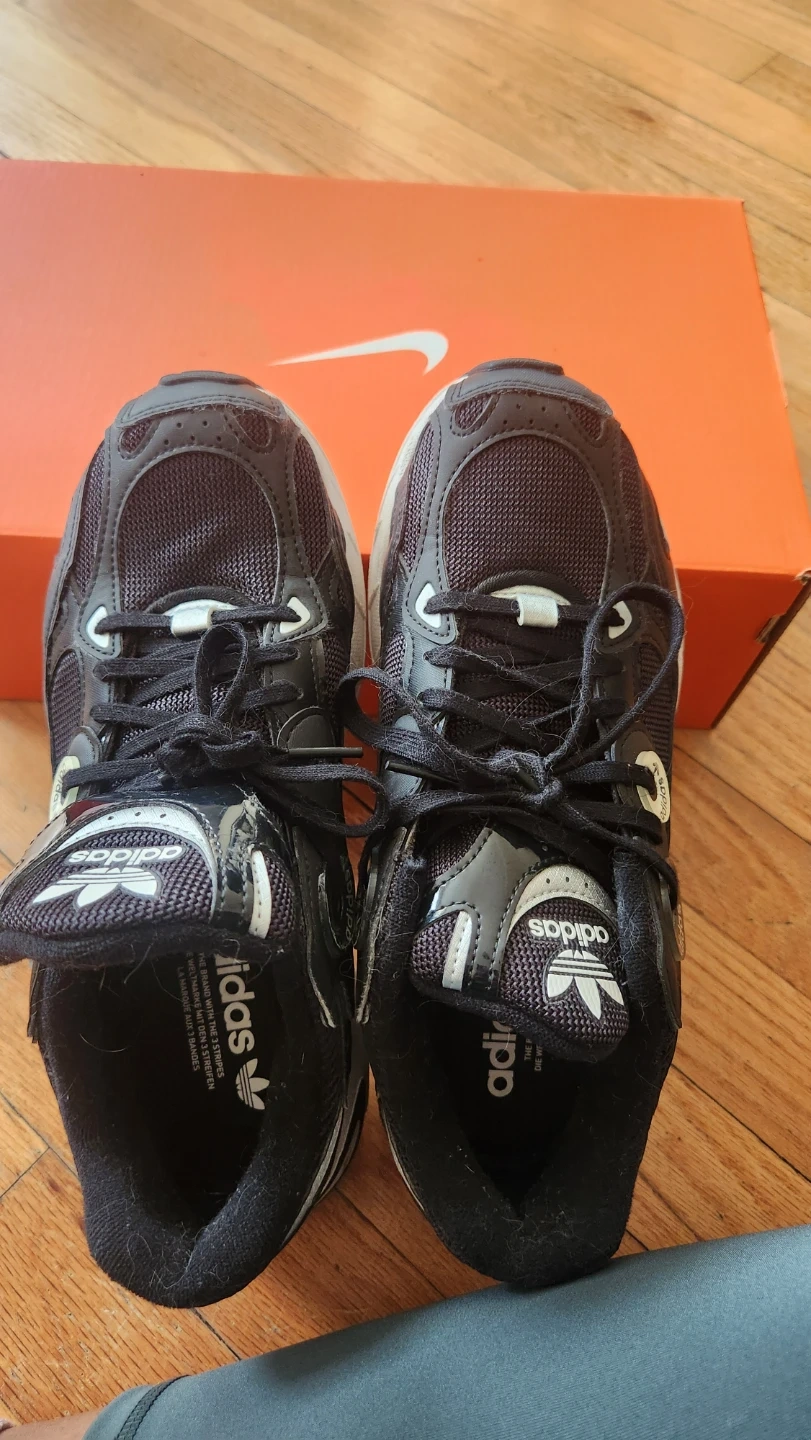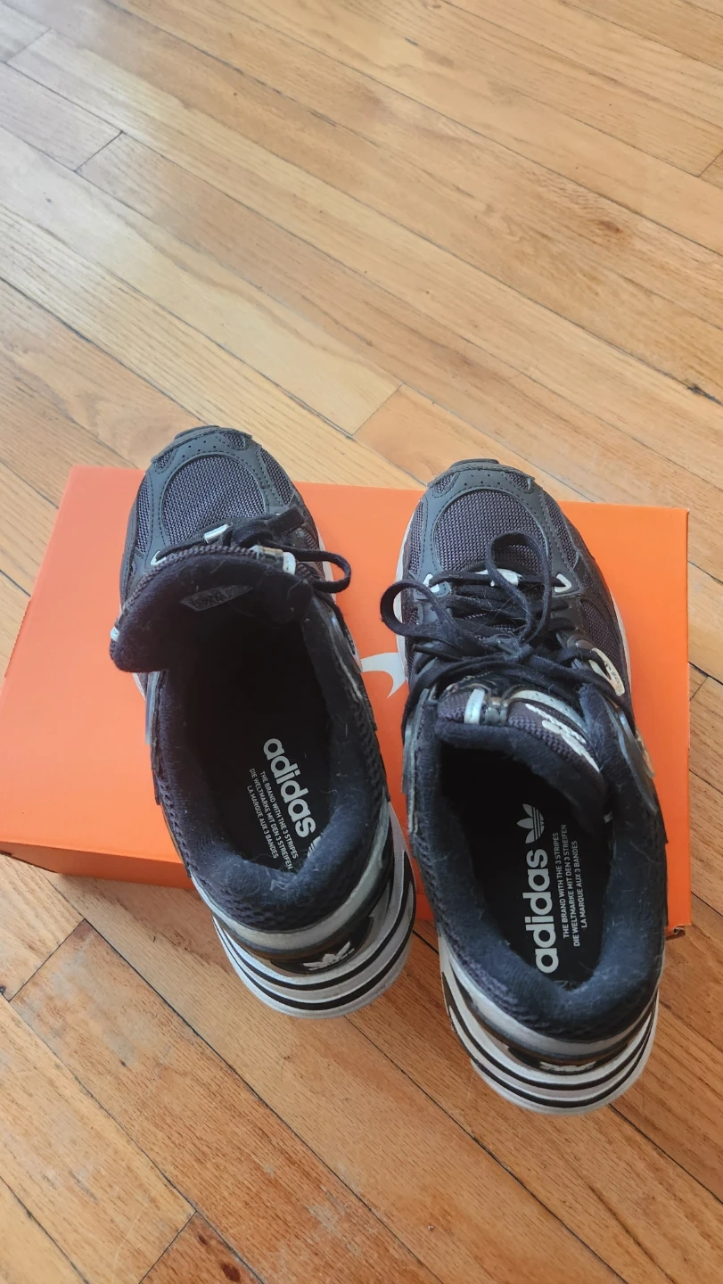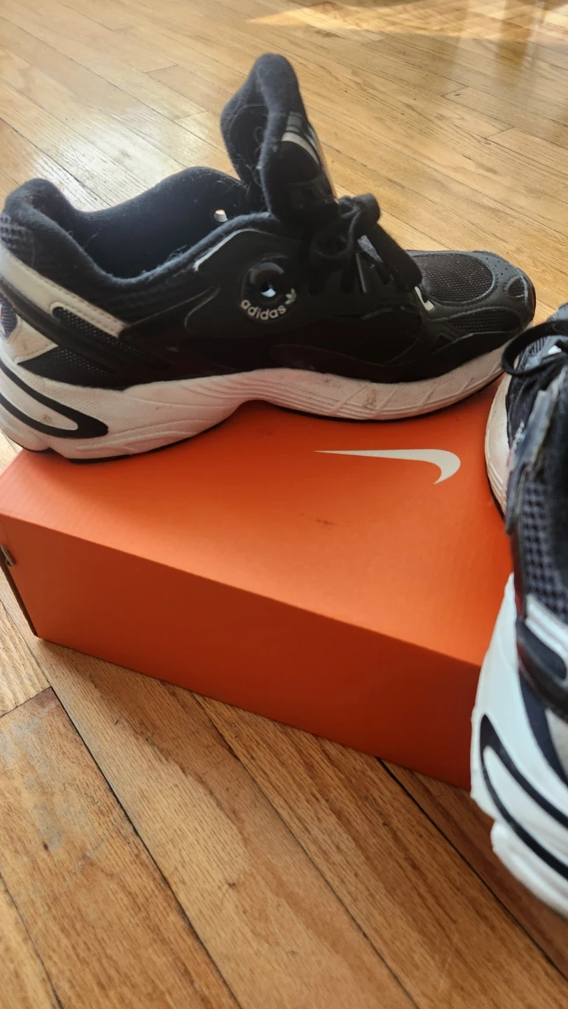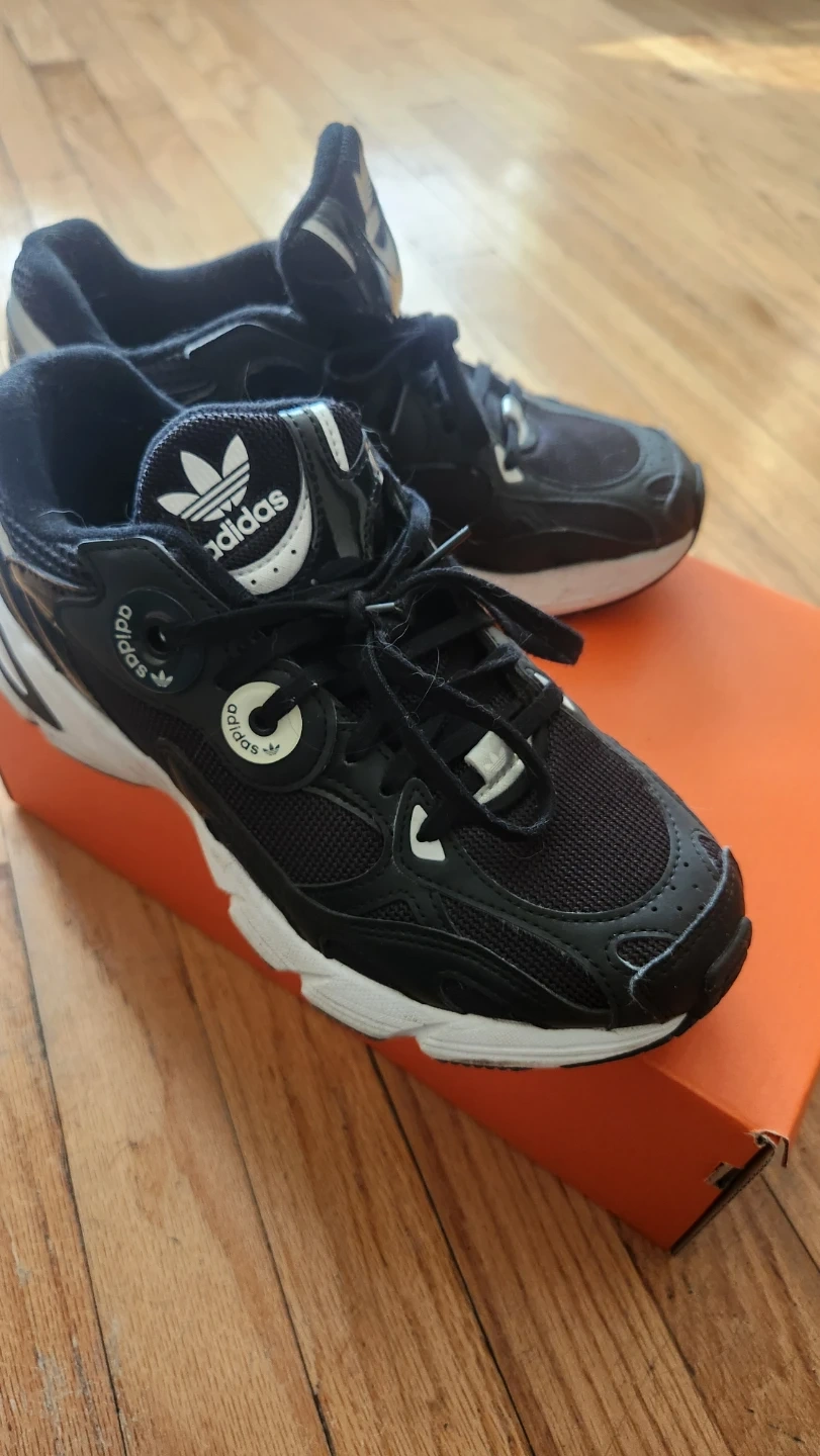 Adidas Astir sneakers in the Core Black and Cloud White. Mesh and synthetic upper. Lace-up closure. These shoes are great for everyday wear! Size 8 women's