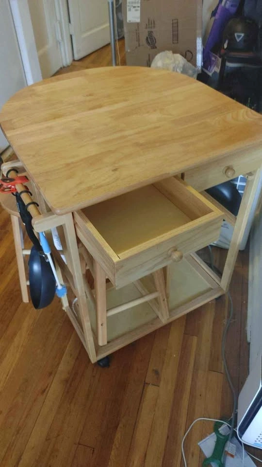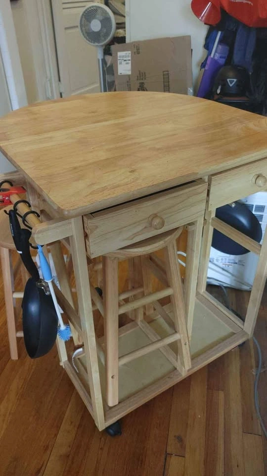 Wimborne Solid Wood Kitchen Island Set. Goes for $159 new. Used. Missing some screw covers, and has some scratches. Pickup from Life Storage in Hicksville, which has staff present and is right next to the LIRR.
