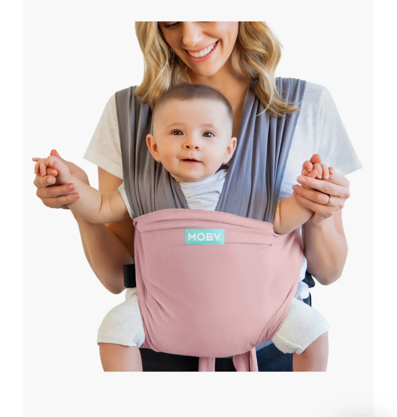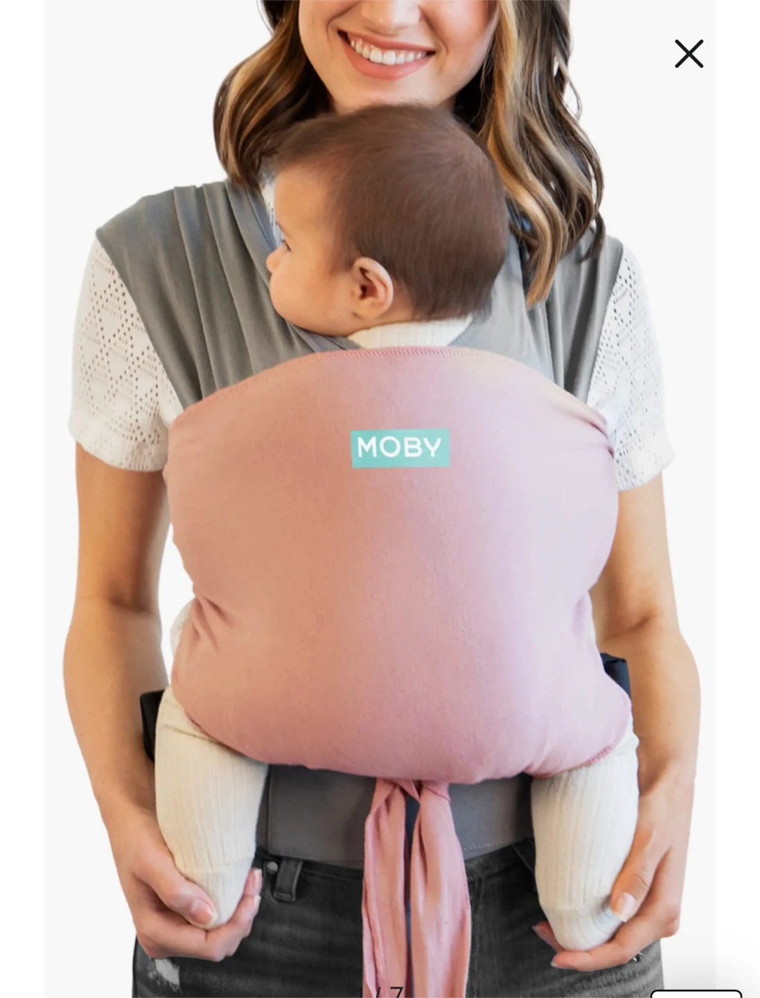 This is a Moby Wrap baby carrier in the color Dusty Rose. It's perfect for keeping your little one close and comfortable. It's in great condition and ready for a new home!