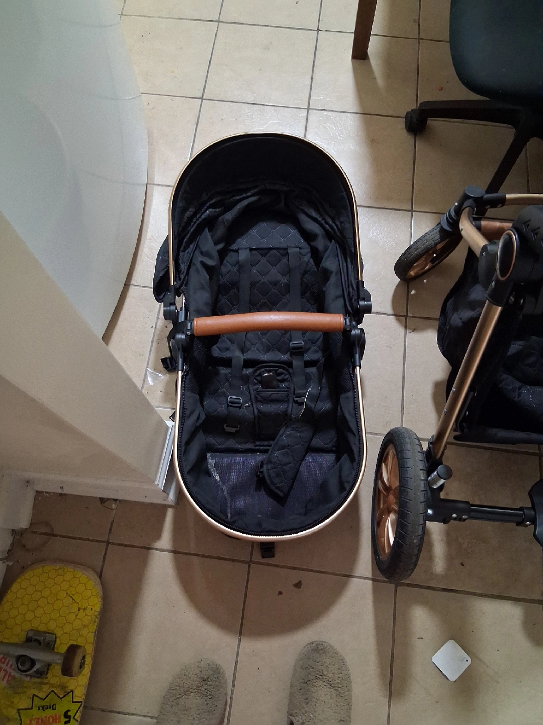 Selling a Mockingbird single-to-double stroller in black and gold. It is in good condition and ready for a new home! This stroller can be converted to a double stroller with the addition of a second seat (not included).
