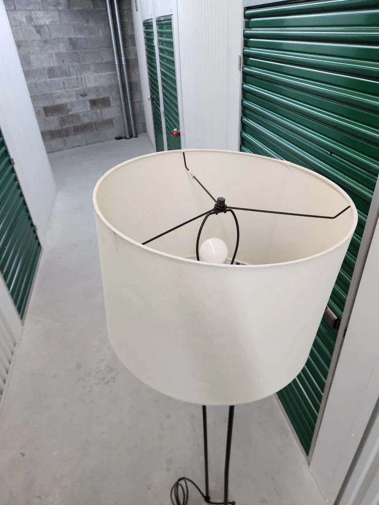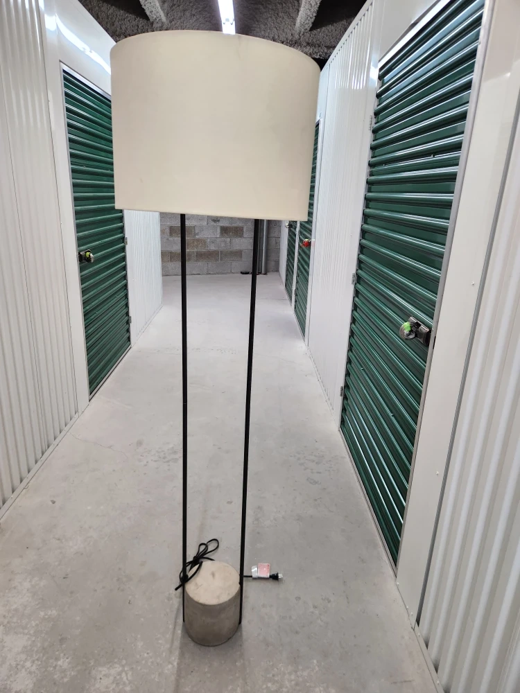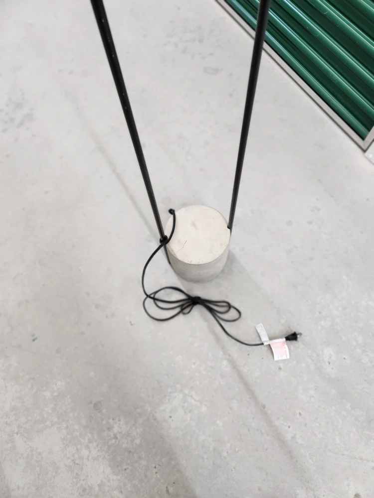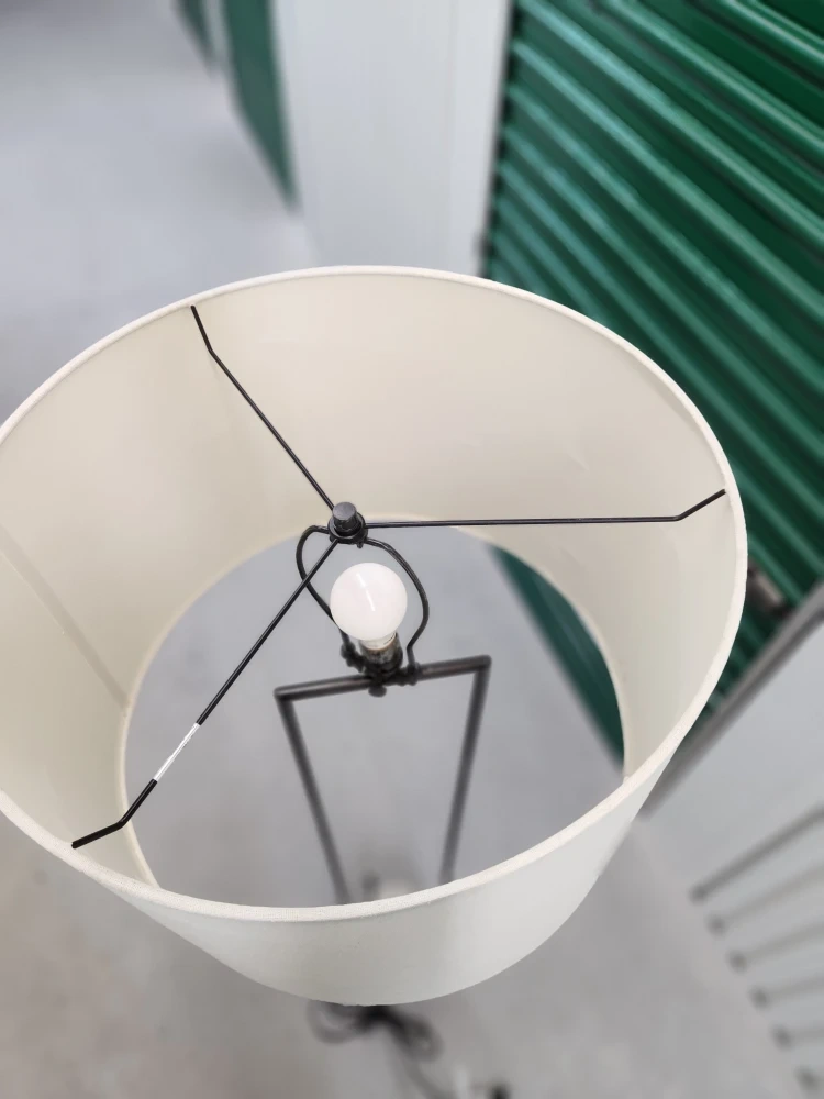 140Selling a modern floor lamp with a beige shade. It has a sleek design with a black metal frame and a concrete base. It is in good condition and would look great in any living room or bedroom!