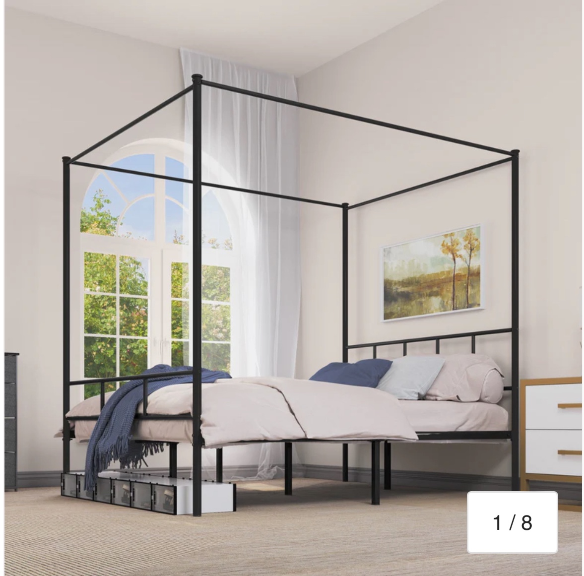 Add a touch of glamour to your bedroom with the Metal Canopy Platform Bed Frame. The modern structure is complemented by the matte finish of the thick metal canopy frame, making it the centerpiece of any room. With its solid structure, it is more stable.