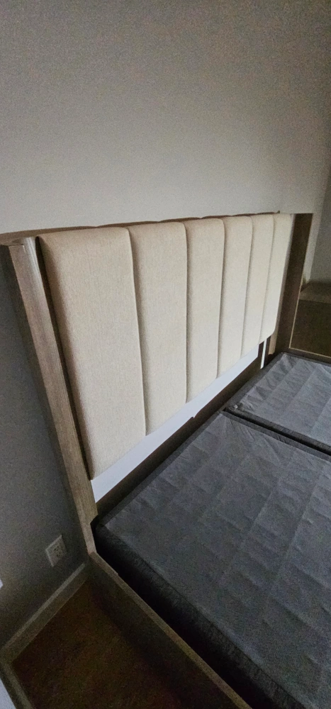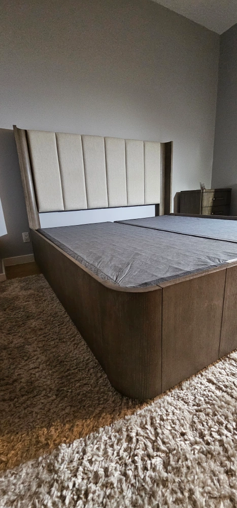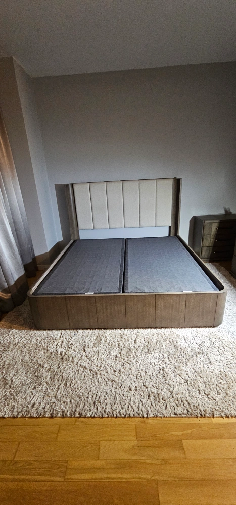 5Selling a modern platform bed with a stylish headboard. It's in great condition and ready to enhance your bedroom! The bed features a sleek, minimalist design with a neutral-toned headboard that complements any decor. The platform design eliminates the need for a box spring, providing a clean and contemporary look