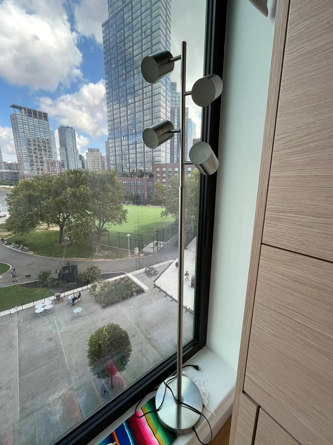 26Selling a modern floor lamp with a sleek silver finish. It features multiple adjustable lights, perfect for adding focused illumination to any room. It's in great condition and ready to brighten up your space!