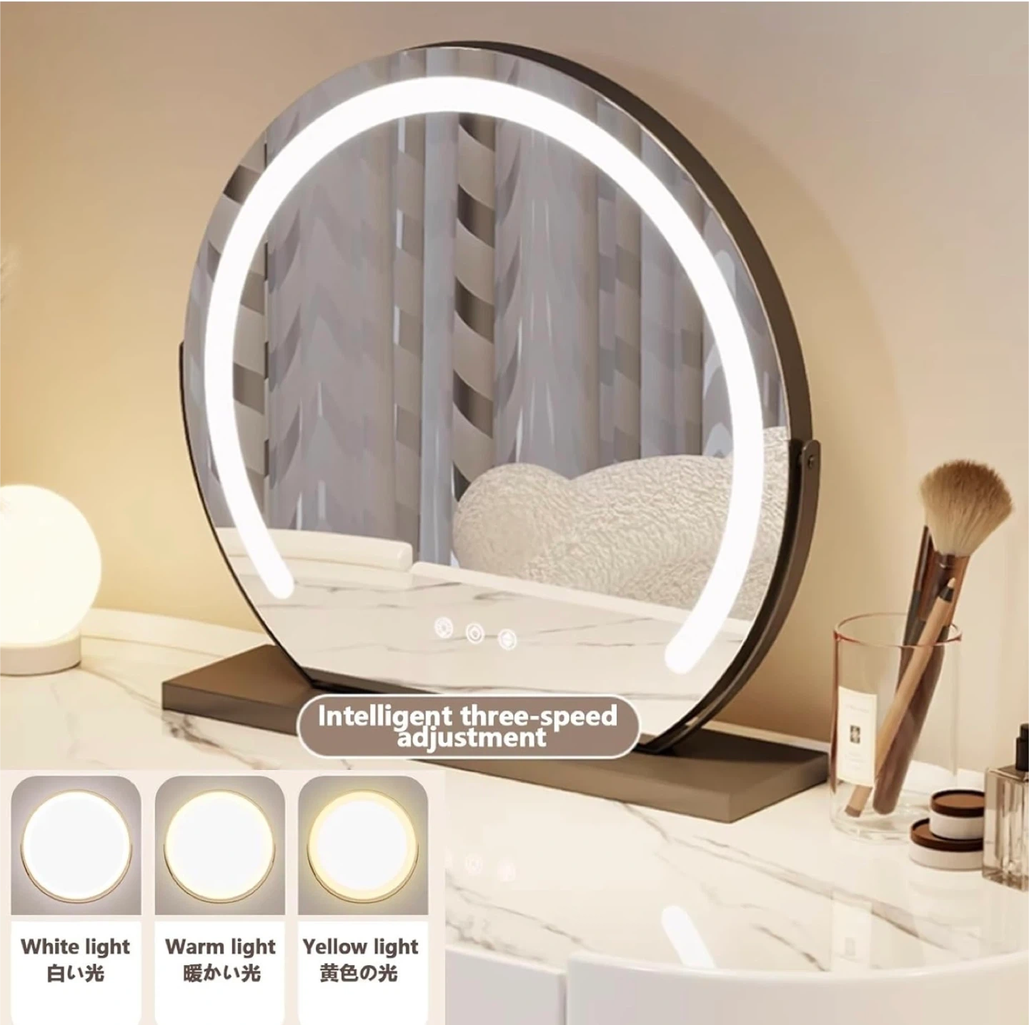 White Vanity Makeup Table with Lighted Mirror & Stool