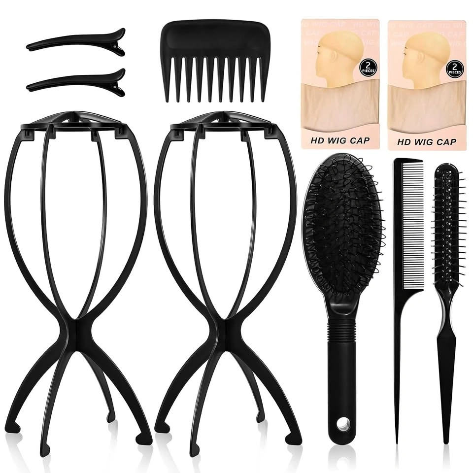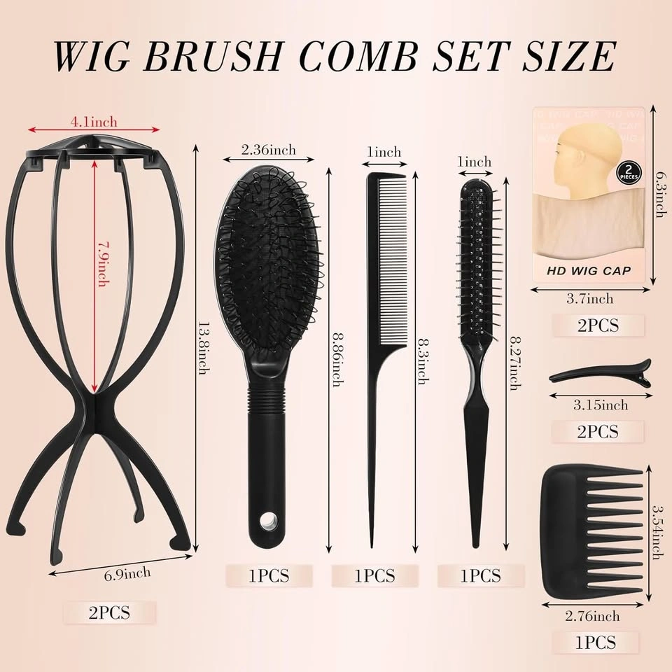 Suitable for All Hair Types: The set includes 1 Wig brush, 2 Handled combs, 1 Wide-tooth comb, 2 Wig stands, 2 Wig nets, and 2 Hair clips. It can comb fine straight hair to thick curly hair, suitable for wig lovers.
