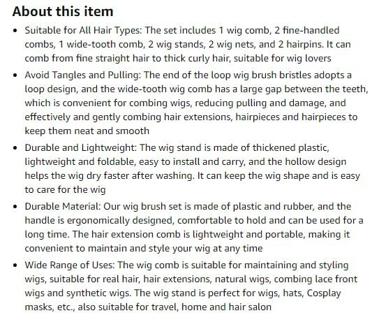 Wide Range of Uses: The wig comb is suitable for maintaining and styling wigs, suitable for real hair, hair extensions, natural wigs, combing lace front wigs and synthetic wigs. The wig stand is perfect for wigs, hats, Cosplay masks, etc., also suitable for travel, home and hair salon.