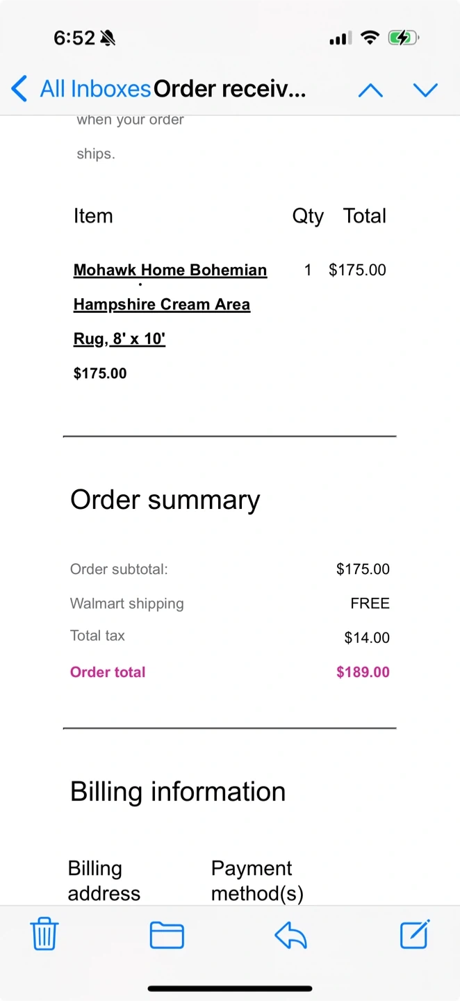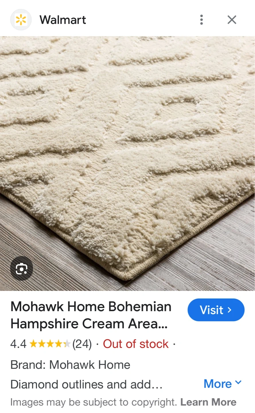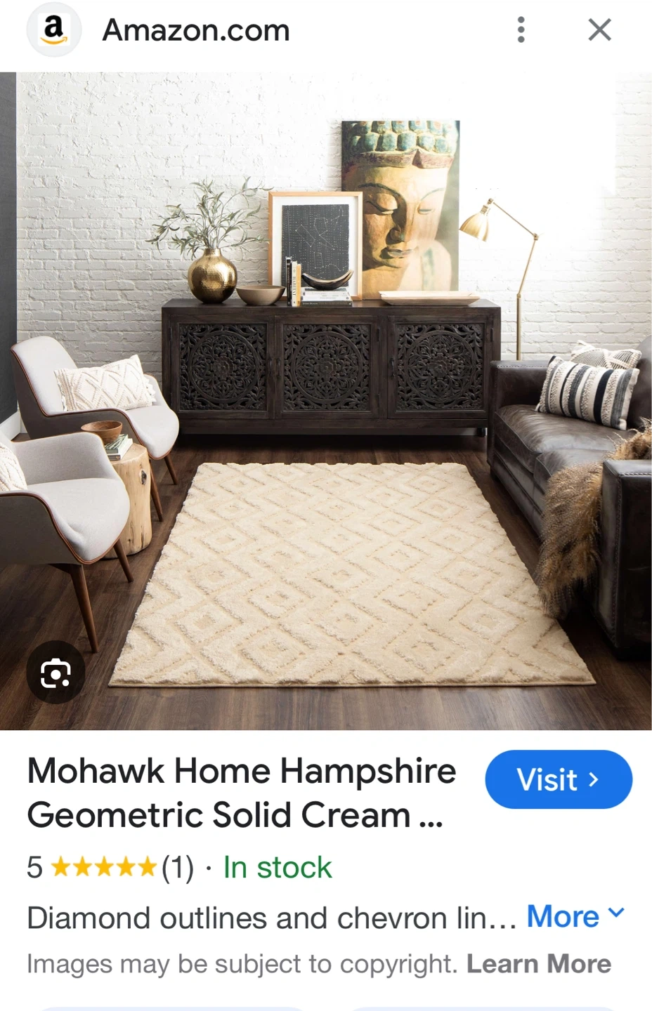 Mohawk Home Bohemian Hampshire Cream Area Rug, sized 8' x 10'". Originally bought for $175.00. Great condition, nonsmoking home
