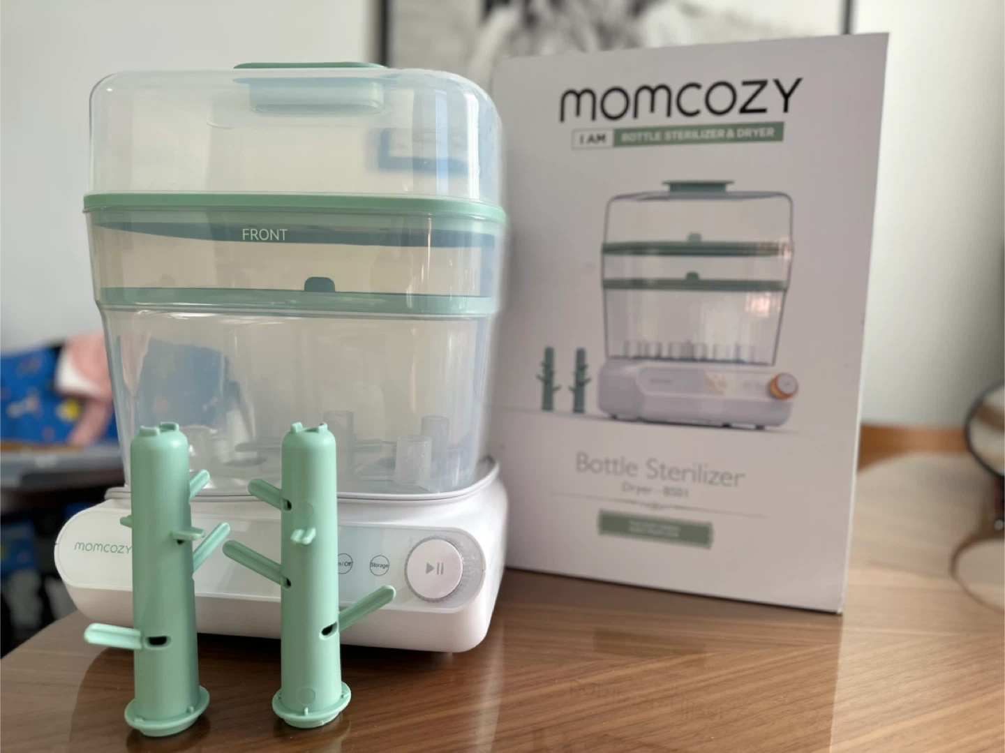 Selling a Momcozy 3 Layers Large Bottle Sterilizer and Dryer in excellent condition! It's fast to sterilize and dry, and is a universal bottle sterilizer for all bottles and breast pump accessories. It has a touch screen and auto-off bottle sanitizer. Originally bought for $99.99
