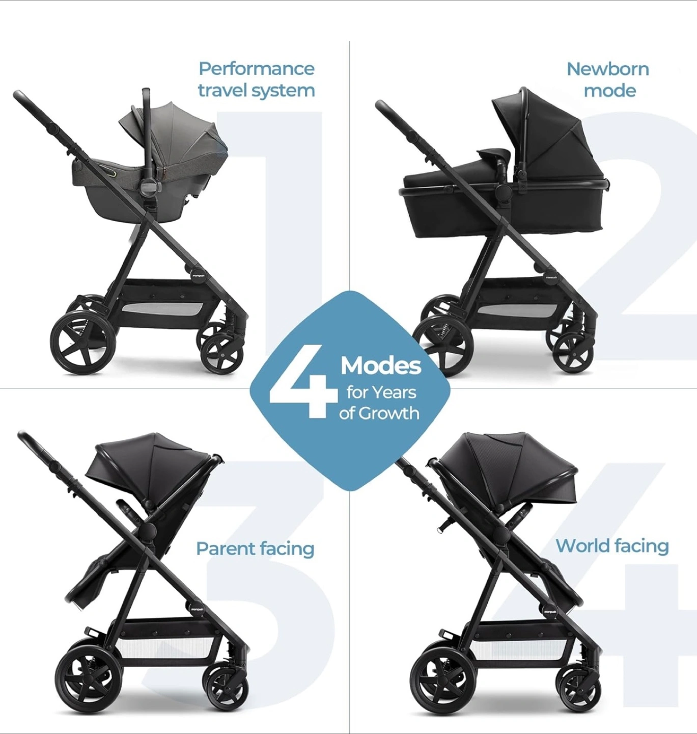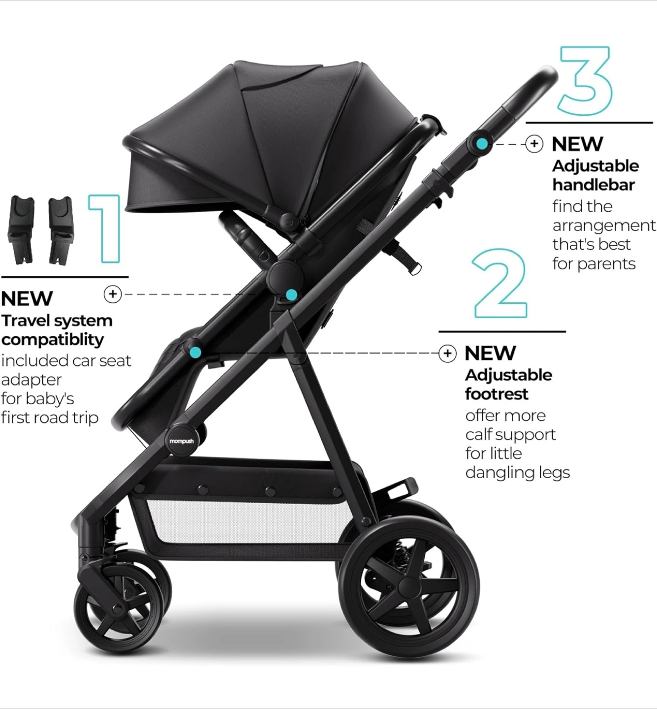 The Mompush Lithe stroller is a compact and lightweight stroller, perfect for navigating city streets or traveling! Key features include: - Compact fold for easy storage and transport - Adjustable handlebar and footrest for parent and child comfort - Travel system compatibility with car seat adapter - One-handed recline for baby's comfort Dimensions: - Height: 43.3 inches - Depth: 38 inches - Width: 23.6 inches It offers 4 modes for years of growth: Performance travel system, Newborn mode, Parent facing, and World facing. Actual pics will be sent privately.