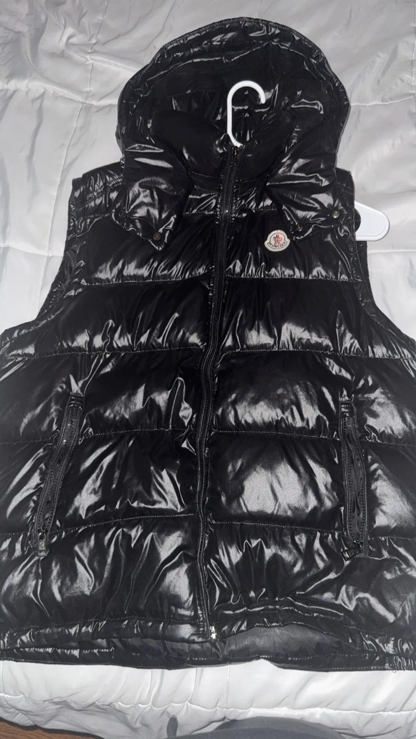Selling a Moncler black padded vest. It's in great condition and ready for a new home! The vest features a glossy finish and the iconic Moncler logo on the chest but the nfc doesn't work (can't scan) zipper is a little broken you got to be careful with it, in the rare occasion if it does come off you can just put it right back on and it will zip fine you can zip it up and unzip it just be careful good condition Size 4 can fit a large meets ups/pick up price is negotiable