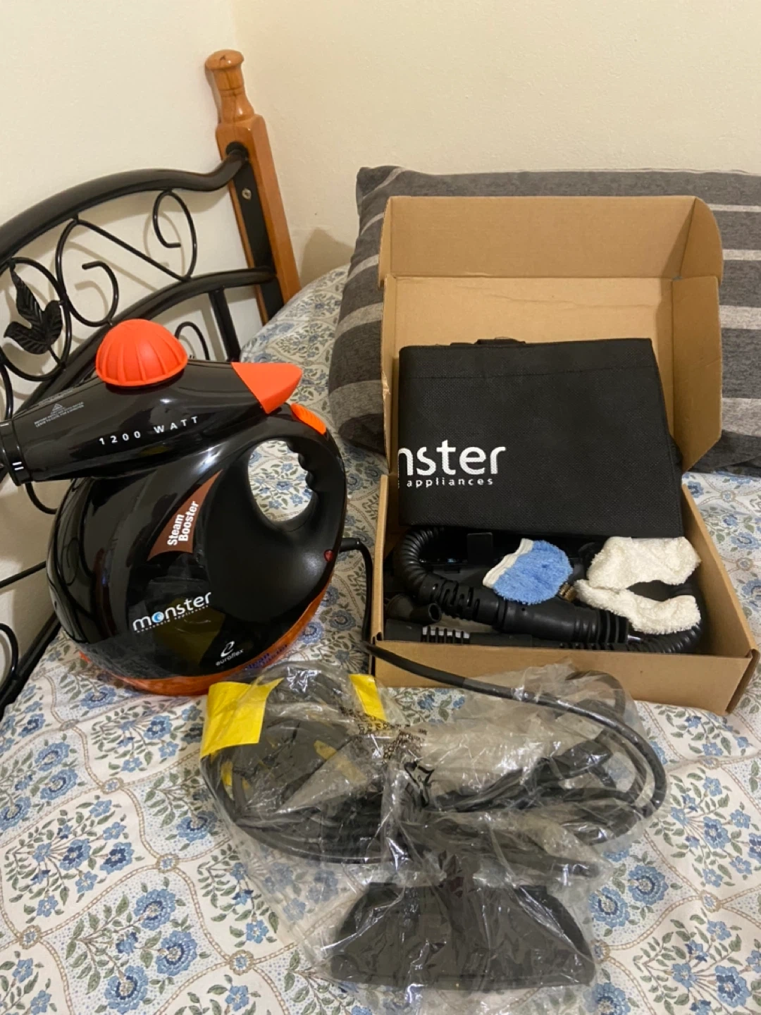Selling a Monster Steam Booster, 1200 watt. It comes with its original box and all included components and accessories. Great for steaming and cleaning!