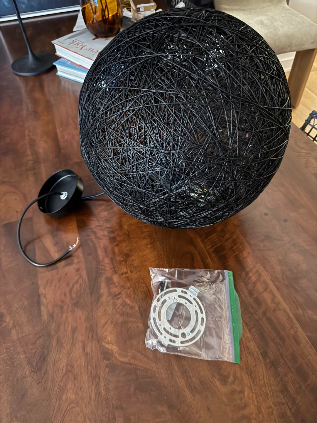 Selling an Mooijane pendant lamp in black. It's in great shape and ready to add a unique touch to your space. This lamp features a beautiful, woven design that creates a warm and inviting atmosphere. Perfect for any room!