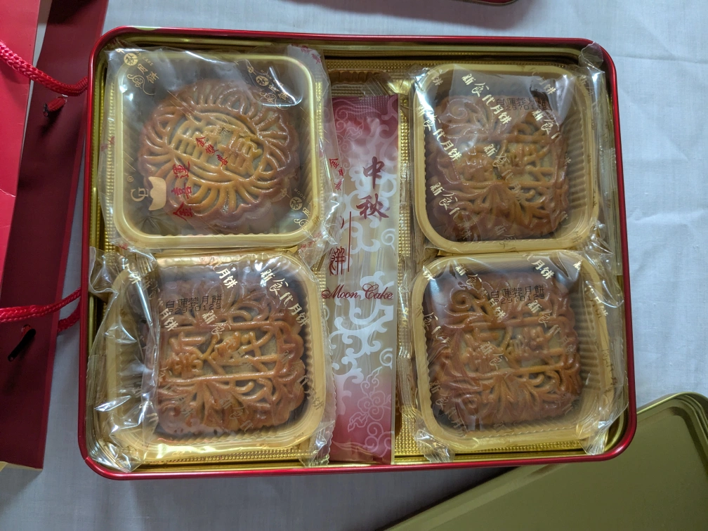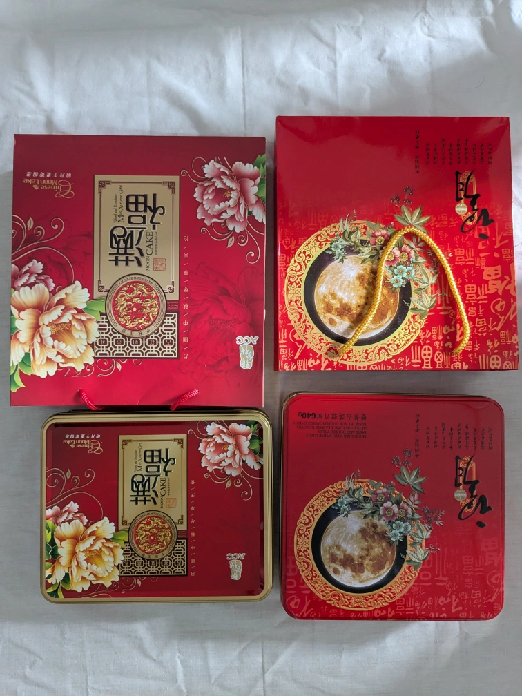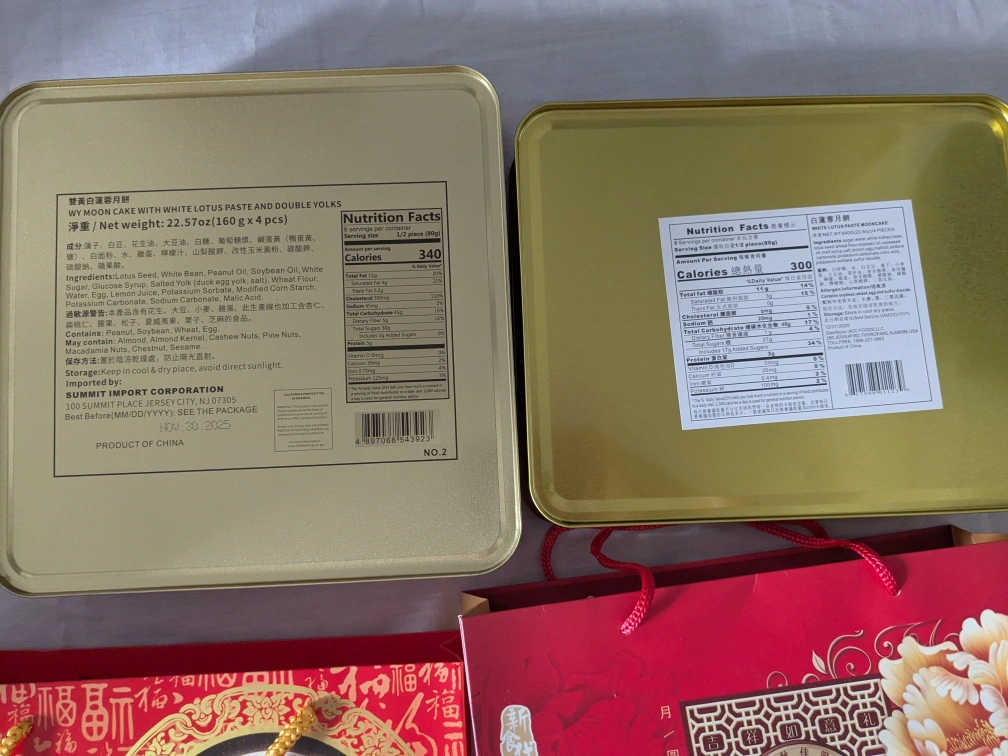 2 boxes of Chinese traditional Moon Cakes one is with White Lotus Paste the other is Double Yolks. These mooncakes are in a decorative tin and come with a carrying bag. 🥕 expired by Nov 2025 and 2026