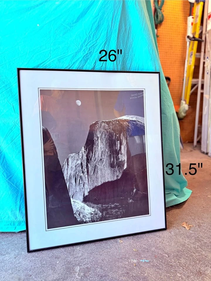 Perfect condition Ansel Adam's "Moon Over Half Dome" framed art print. Measures 26" x 31.5". Pick up only.