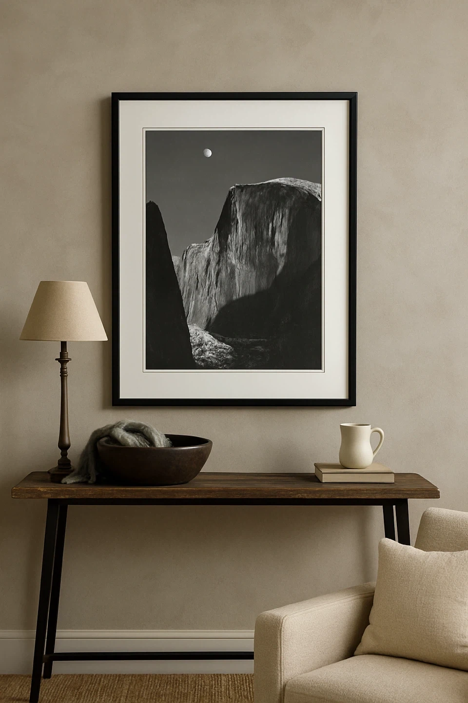 "Moon Over Half Dome" framed wall art print by Ansel Adams