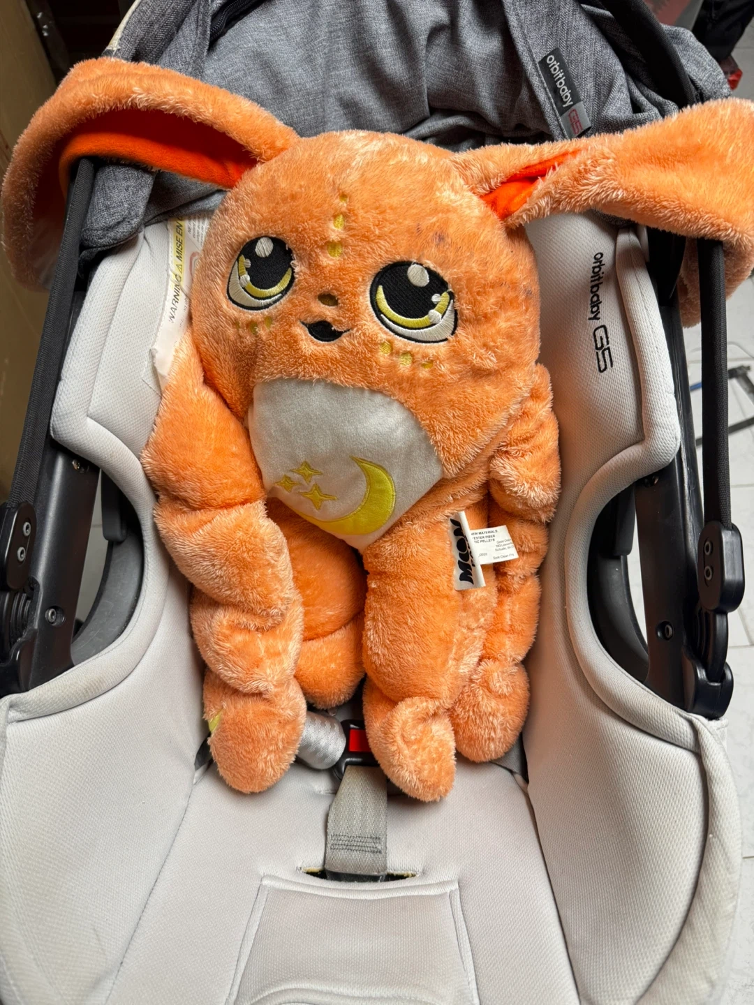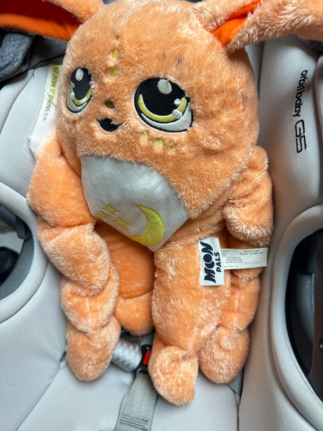Free a super cute Moon Pals plush toy in orange! It's in great condition and ready for a new home. This cuddly pal features a sweet design with a moon and stars detail. Perfect for kids or anyone who loves a soft, huggable friend
