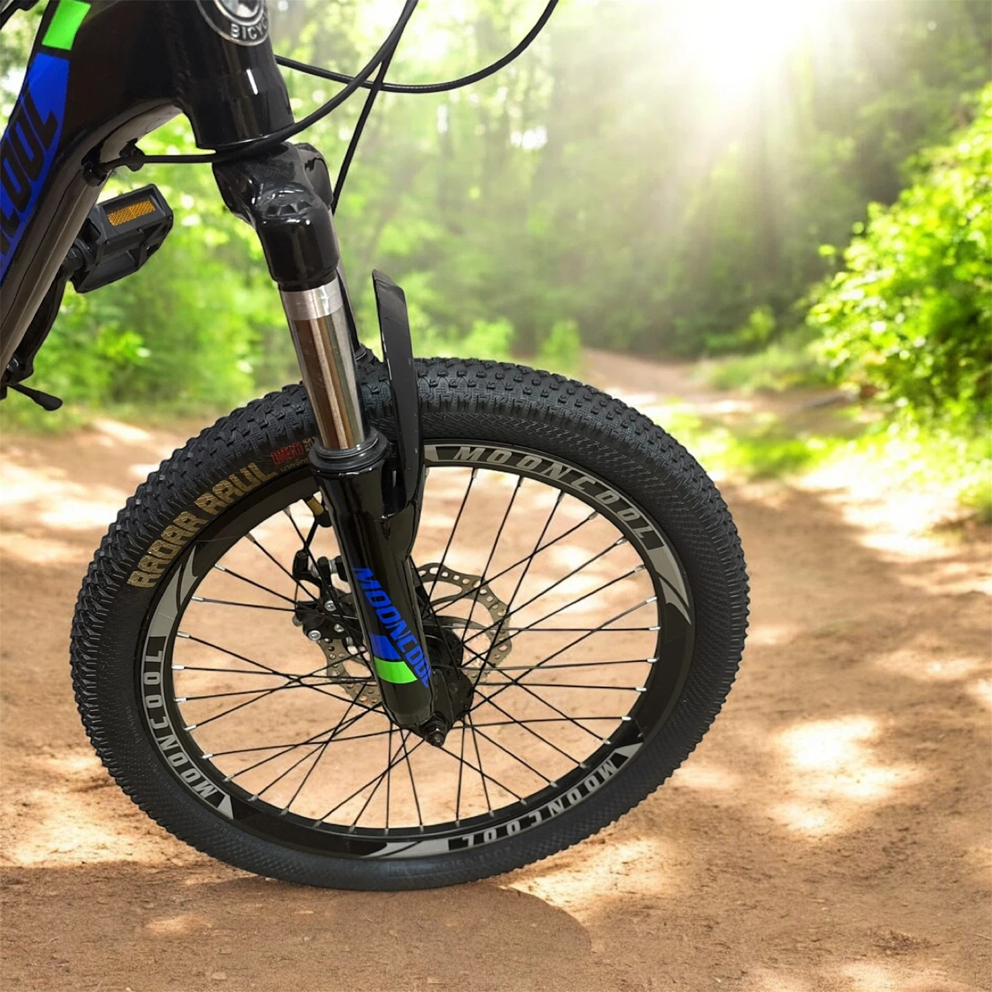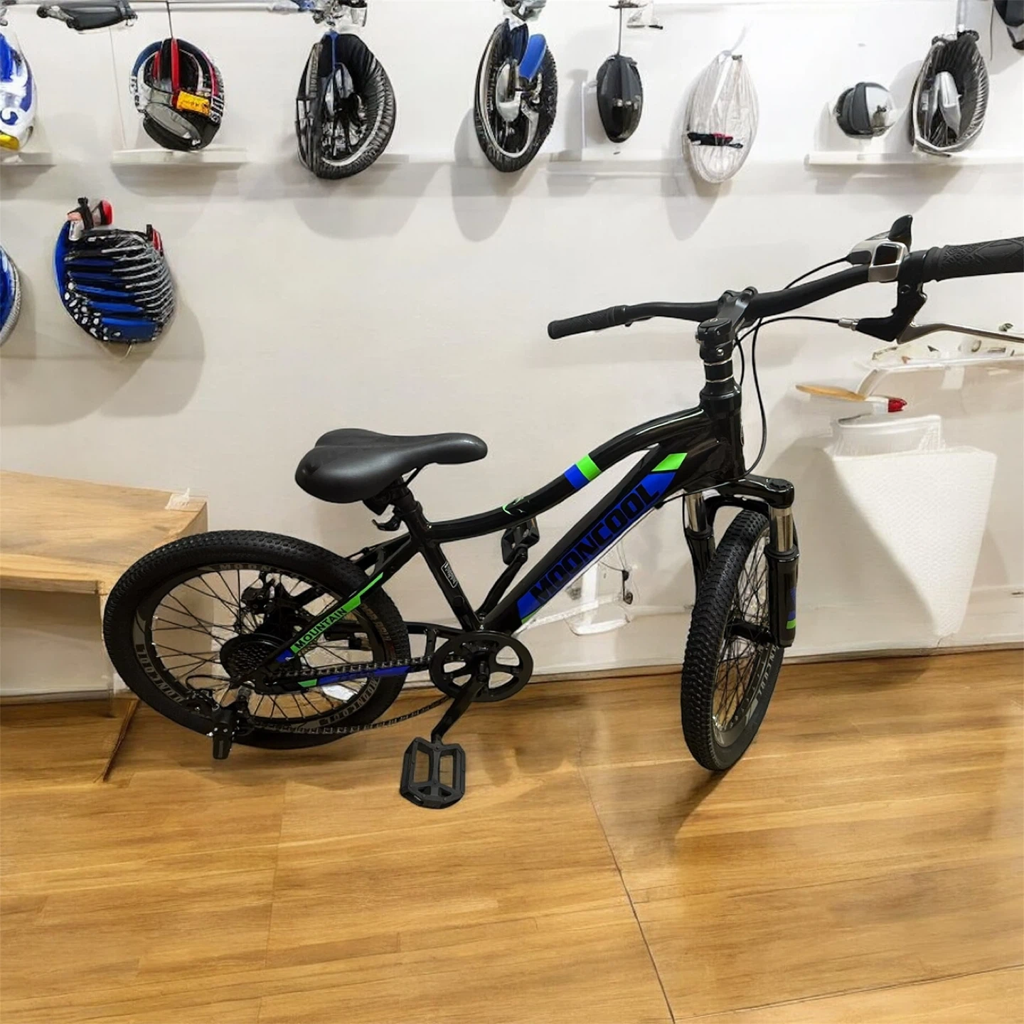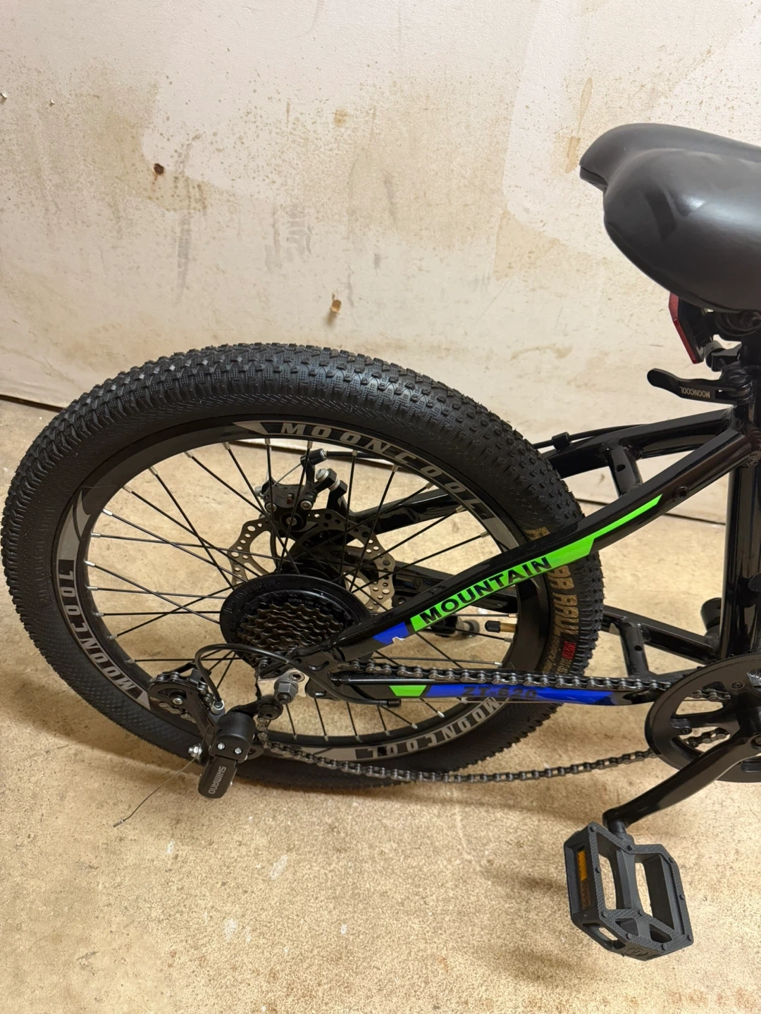 Selling a Mooncool mountain bike. It's black with green and blue accents. Great for hitting the trails or just cruising around the neighborhood. Just like new. Never used.