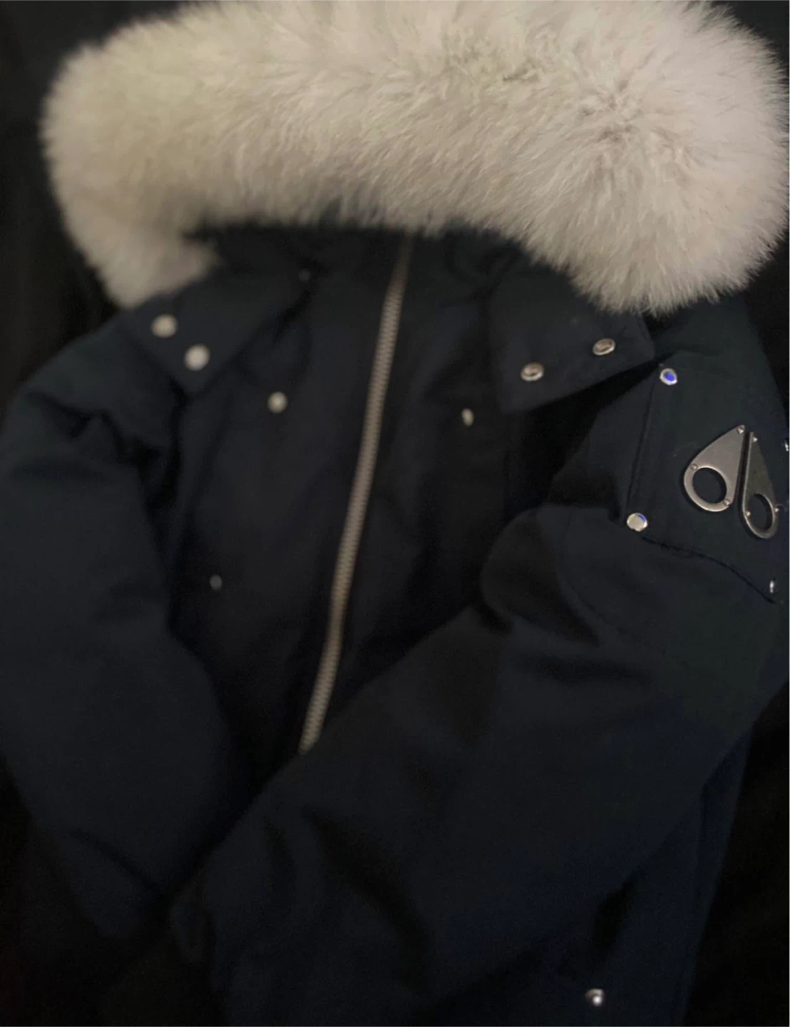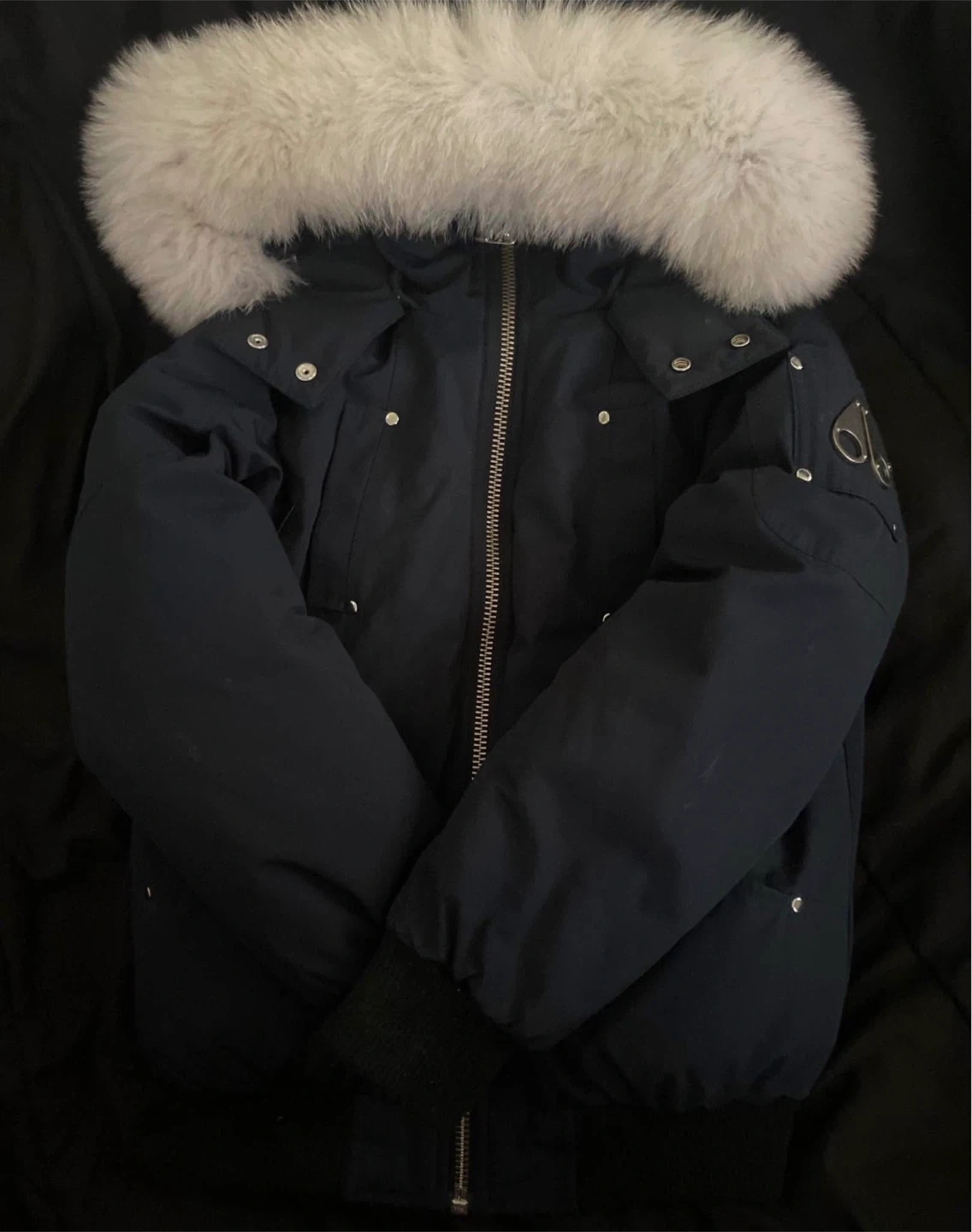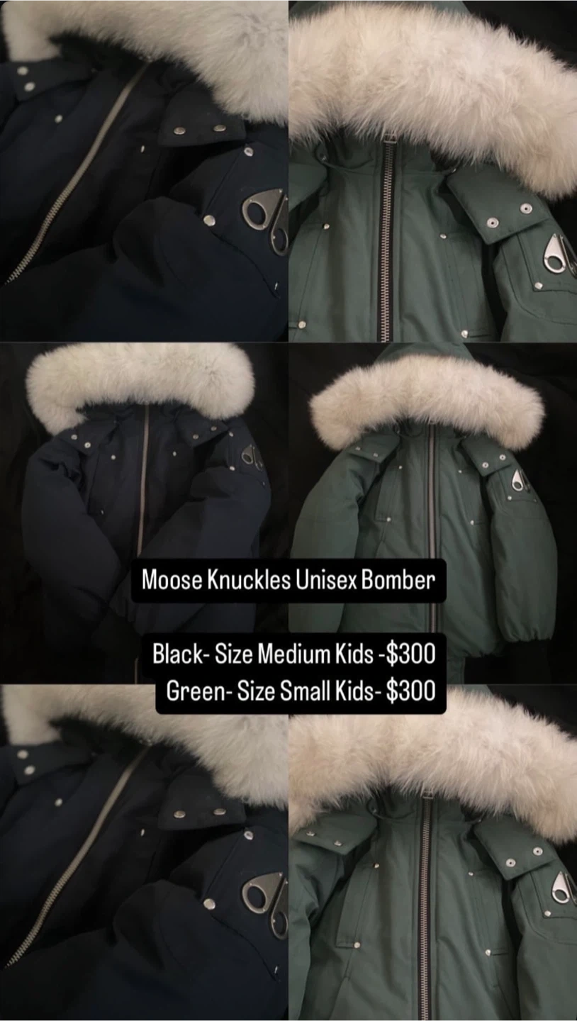 10Selling a Moose Knuckles unisex bomber jacket in black, size medium for kids. It's a stylish and warm jacket perfect for the colder months!