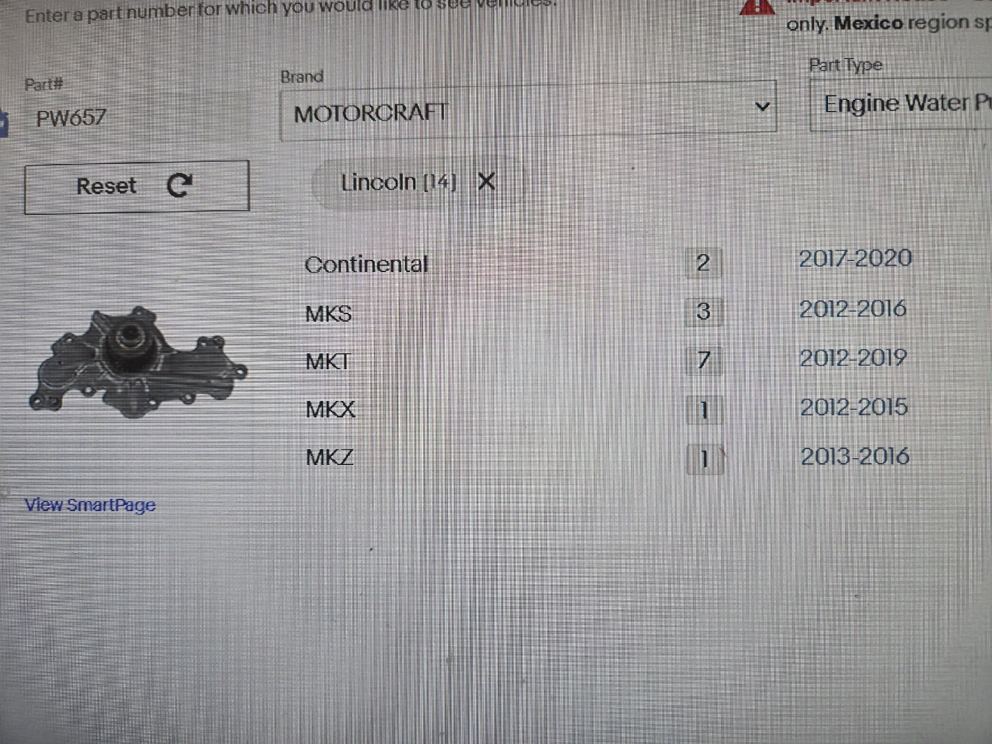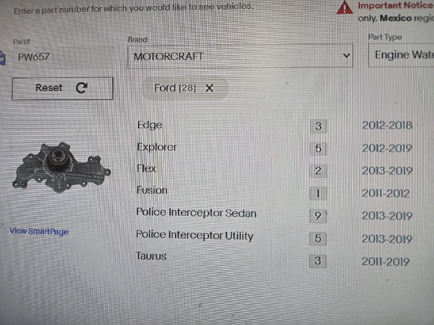 Selling a new Motorcraft PW-606 PW580 = PW657 water pump; For Ford and Lincoln. Available 4 pieces