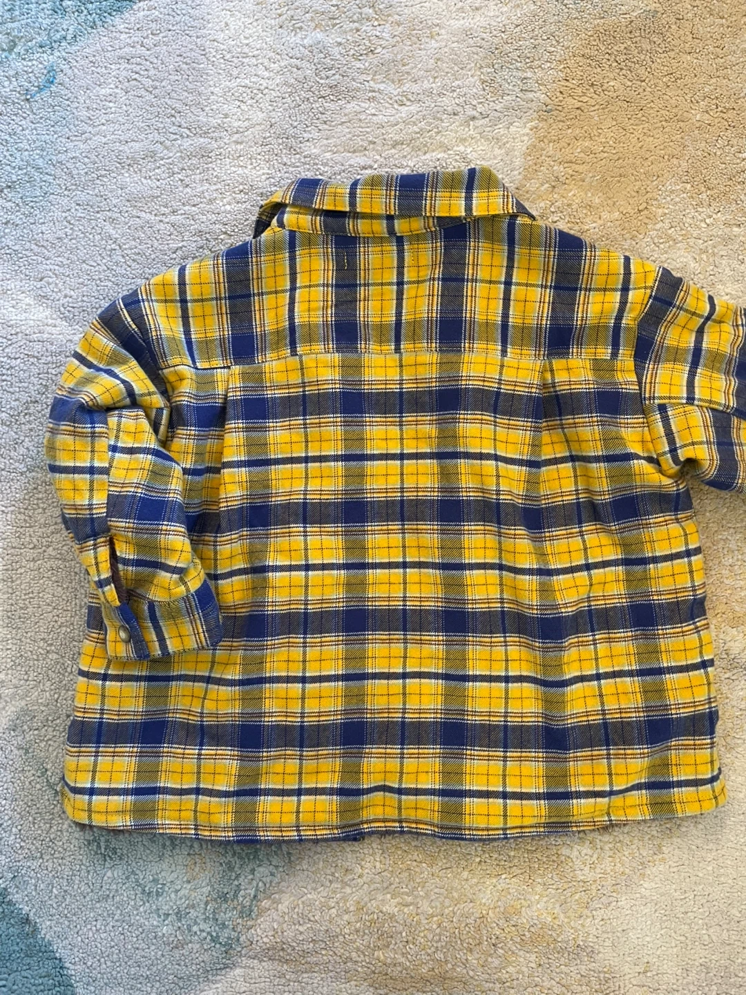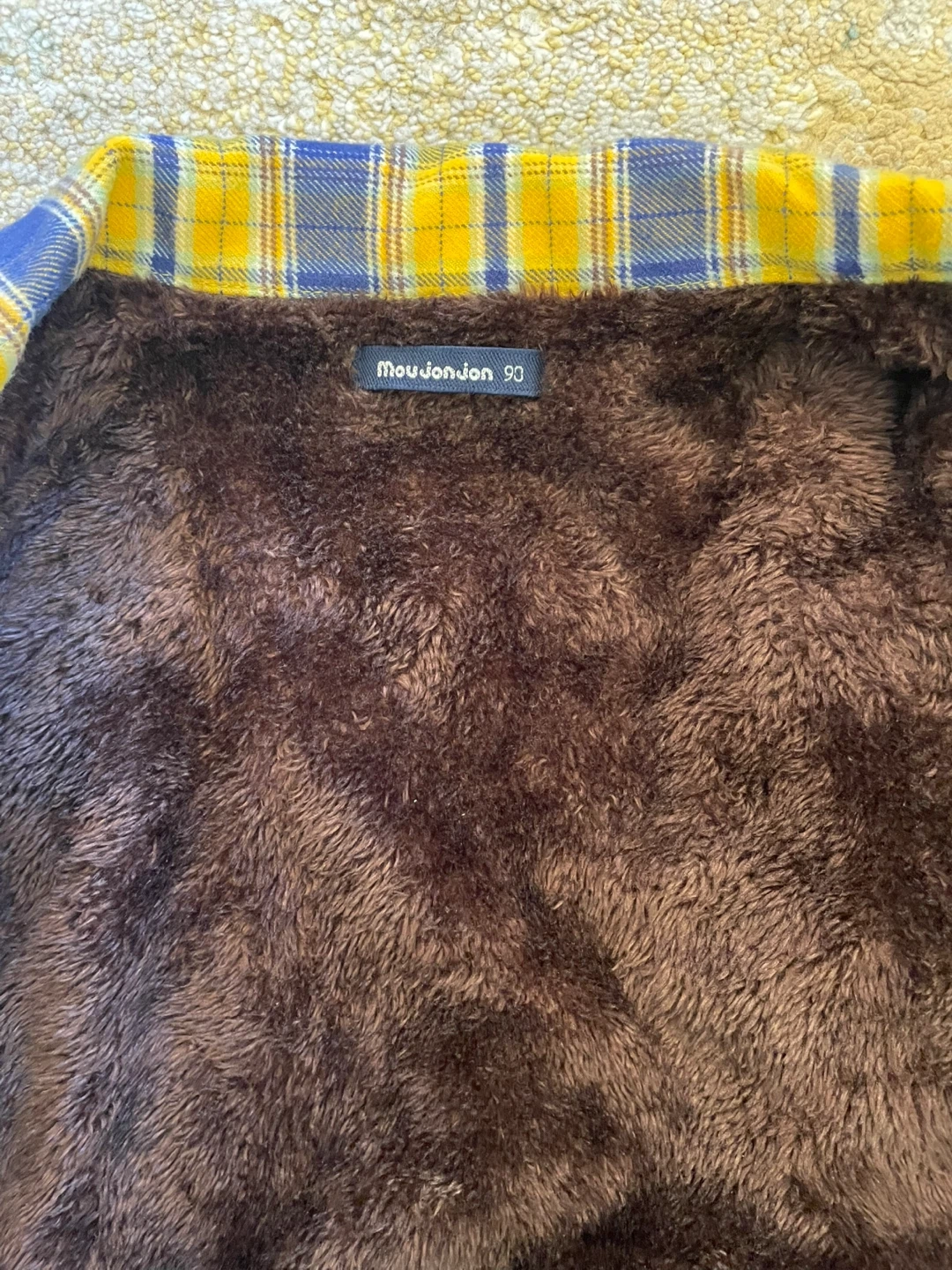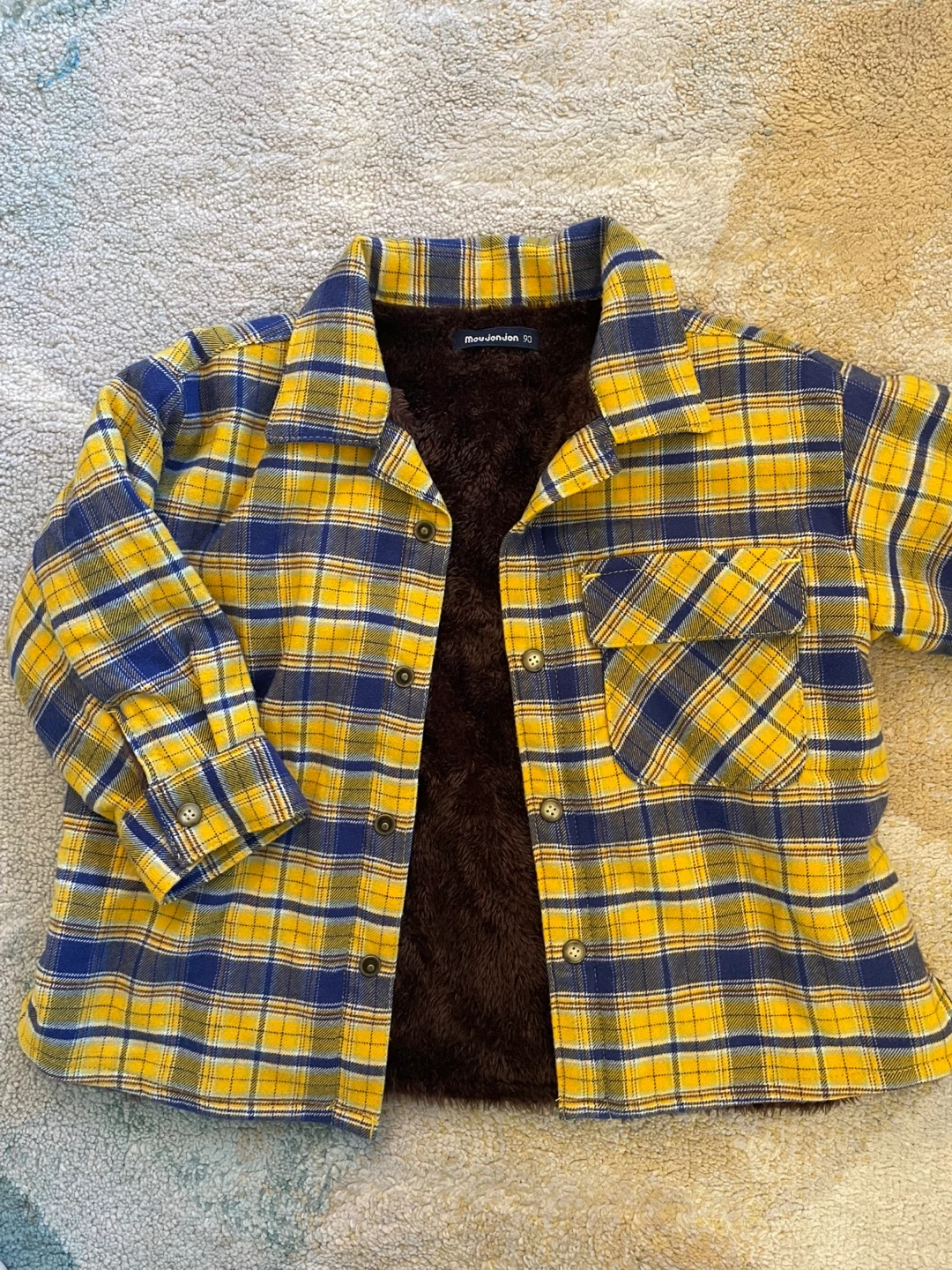 10Here's a Moujonjon flannel shirt in size 90! That’s around 2T. Worn a few times, in great condition.