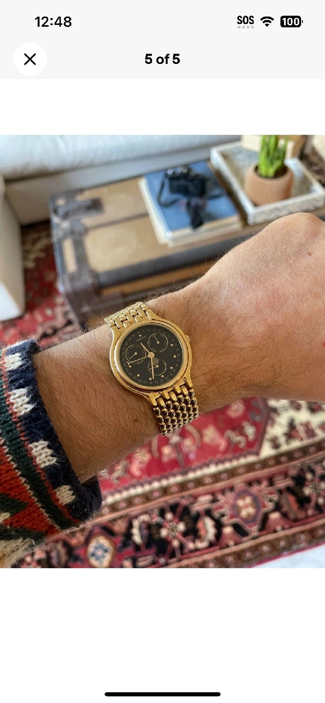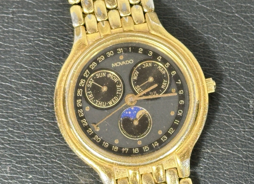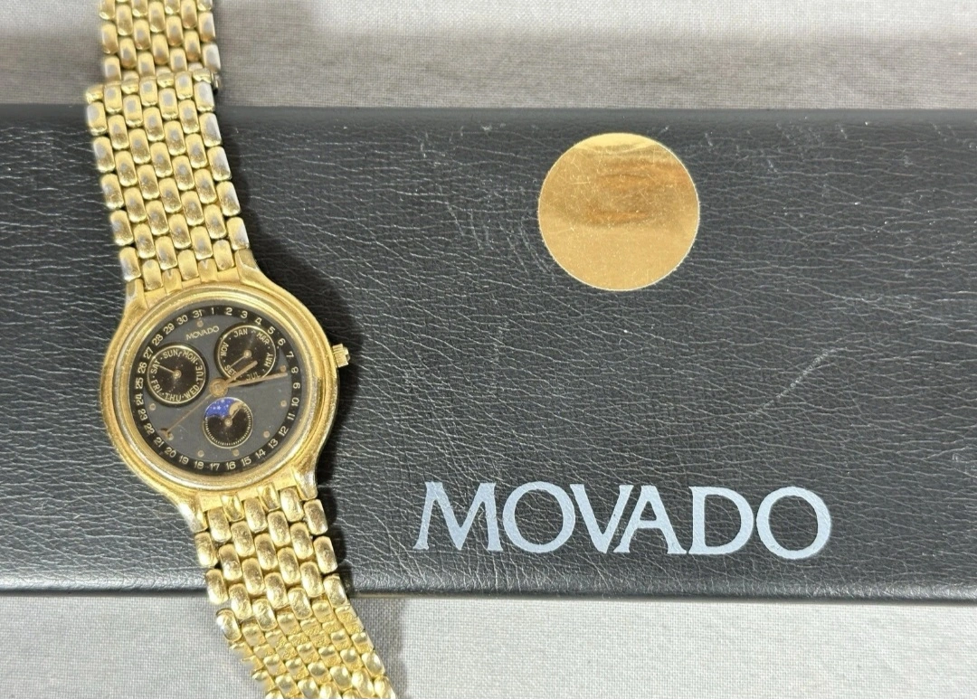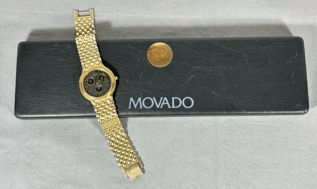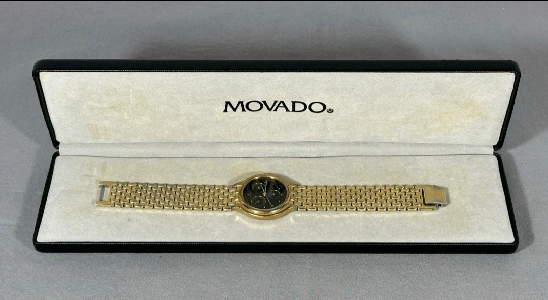 Selling a Movado Museum watch with a gold band. It comes with the original box. The watch has a black face with gold accents. A stylish timepiece for any occasion!