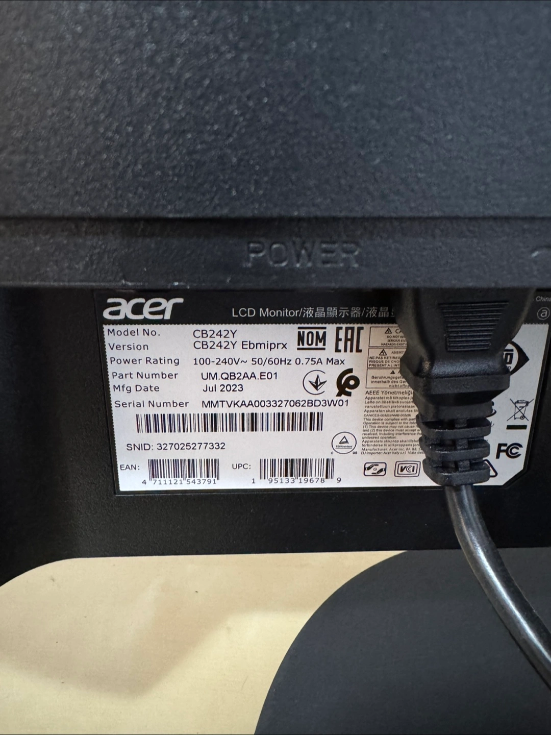 10Used Acer CB242Y monitor. 24 inch screen. Black. Great condition.