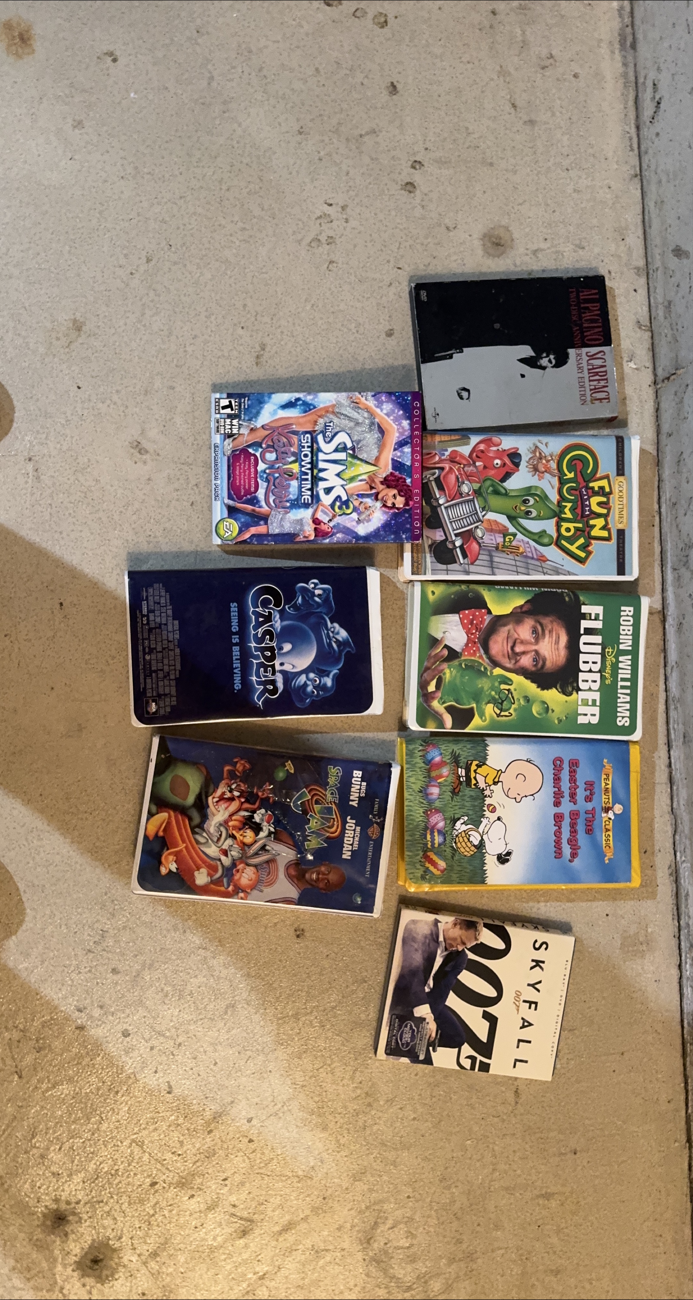 31Selling a collection of movies and games! Titles include: - Scarface Two-Disc Anniversary Edition - The Sims 3 Showtime Expansion Pack - Fun with Gumby - Flubber (Disney's Robin Williams) - It's The Easter Beagle, Charlie Brown (Peanuts Classic) - Space Jam (Bugs Bunny, Michael Jordan) - Casper - 007 Skyfall (Blu-Ray, DVD, Digital Copy)