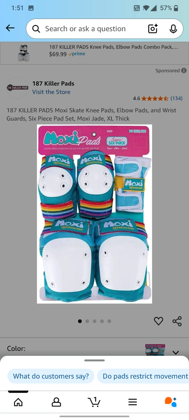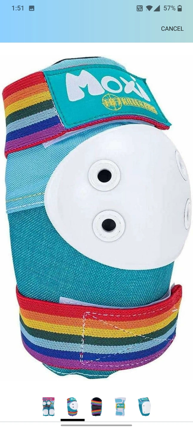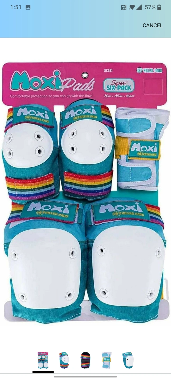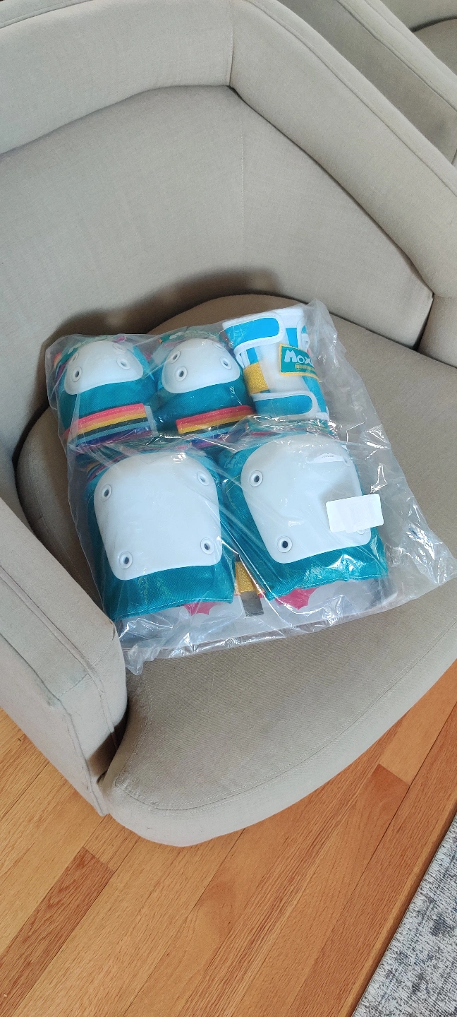 A six-piece pad set. Includes knee pads, elbow pads, and wrist guards. Perfect for skating, allowing you to glide through your day with ease. Women's Small size