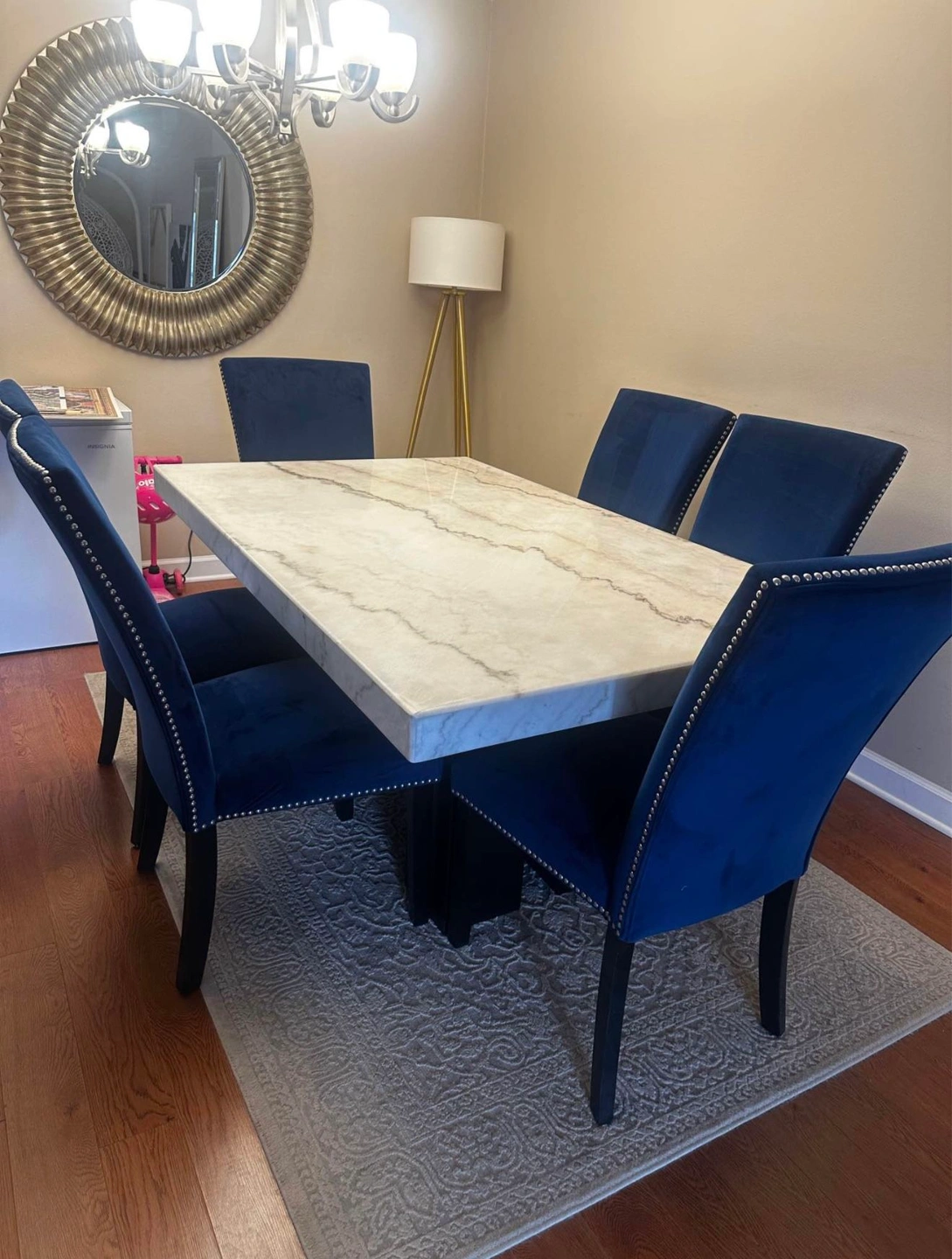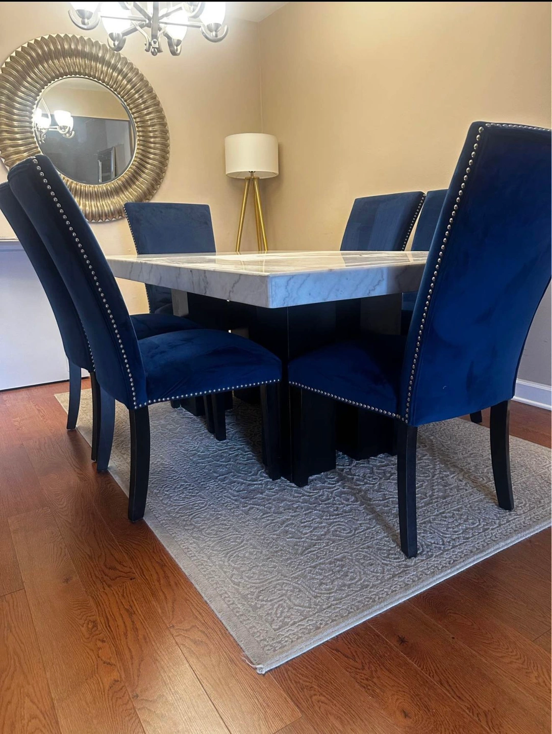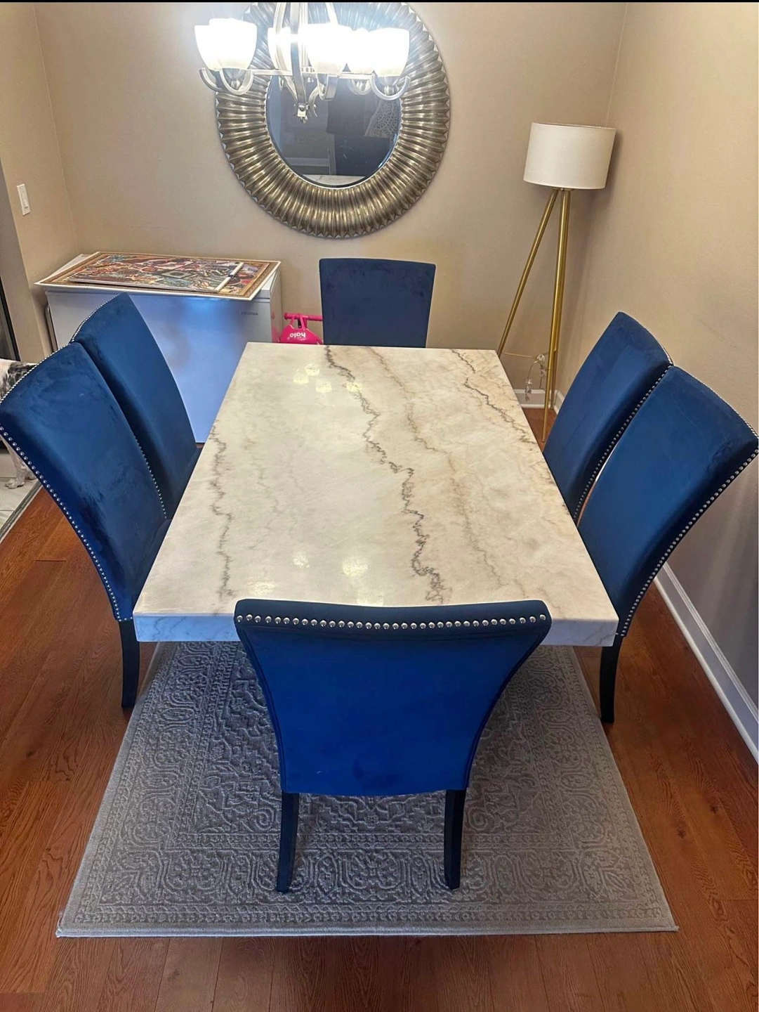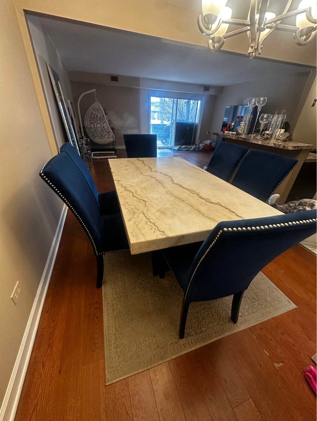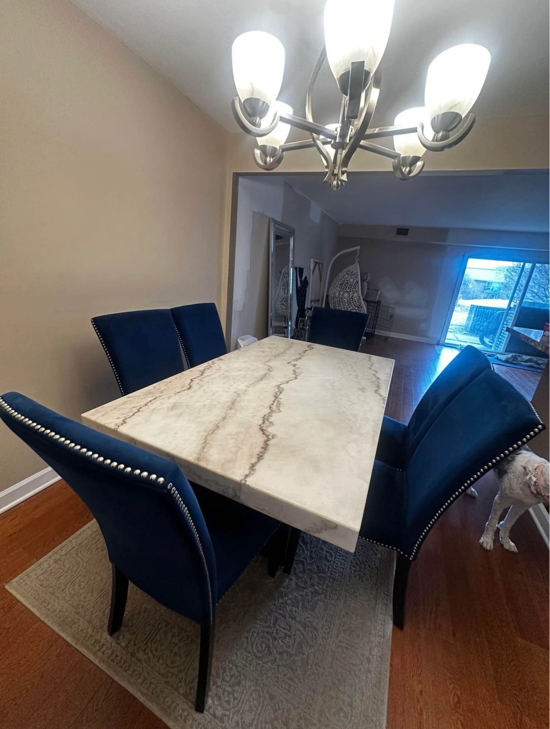 Genuine marble dining set with a rectangular table and 6 chairs.