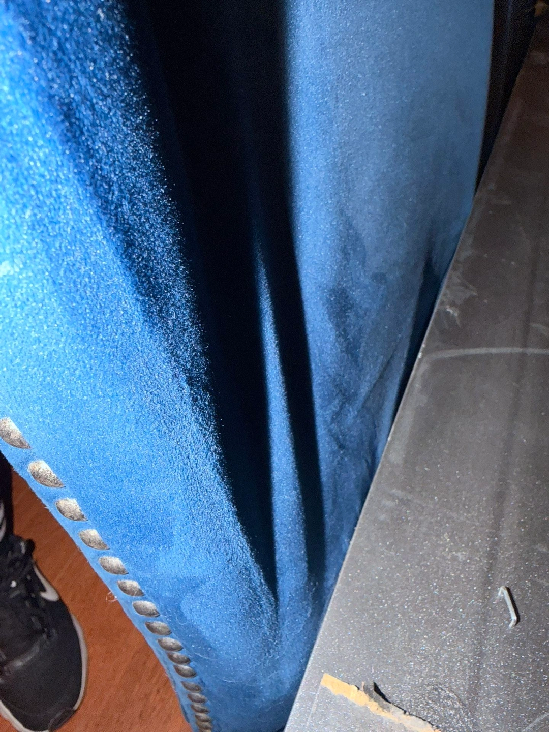 One other chair has a pushed-in back cushion (see pictures).