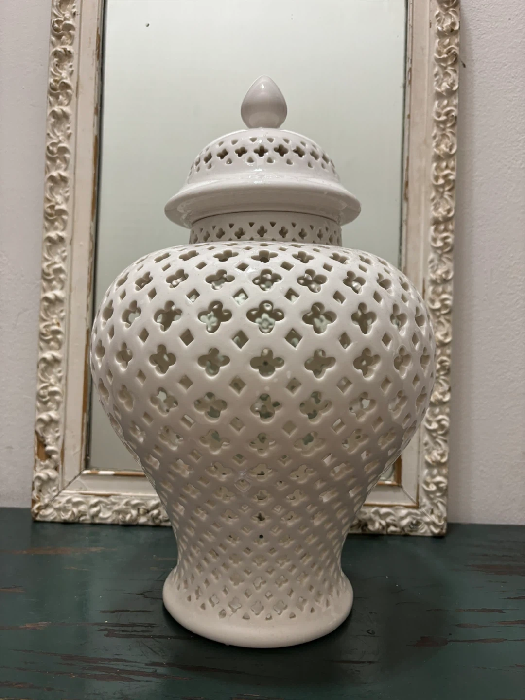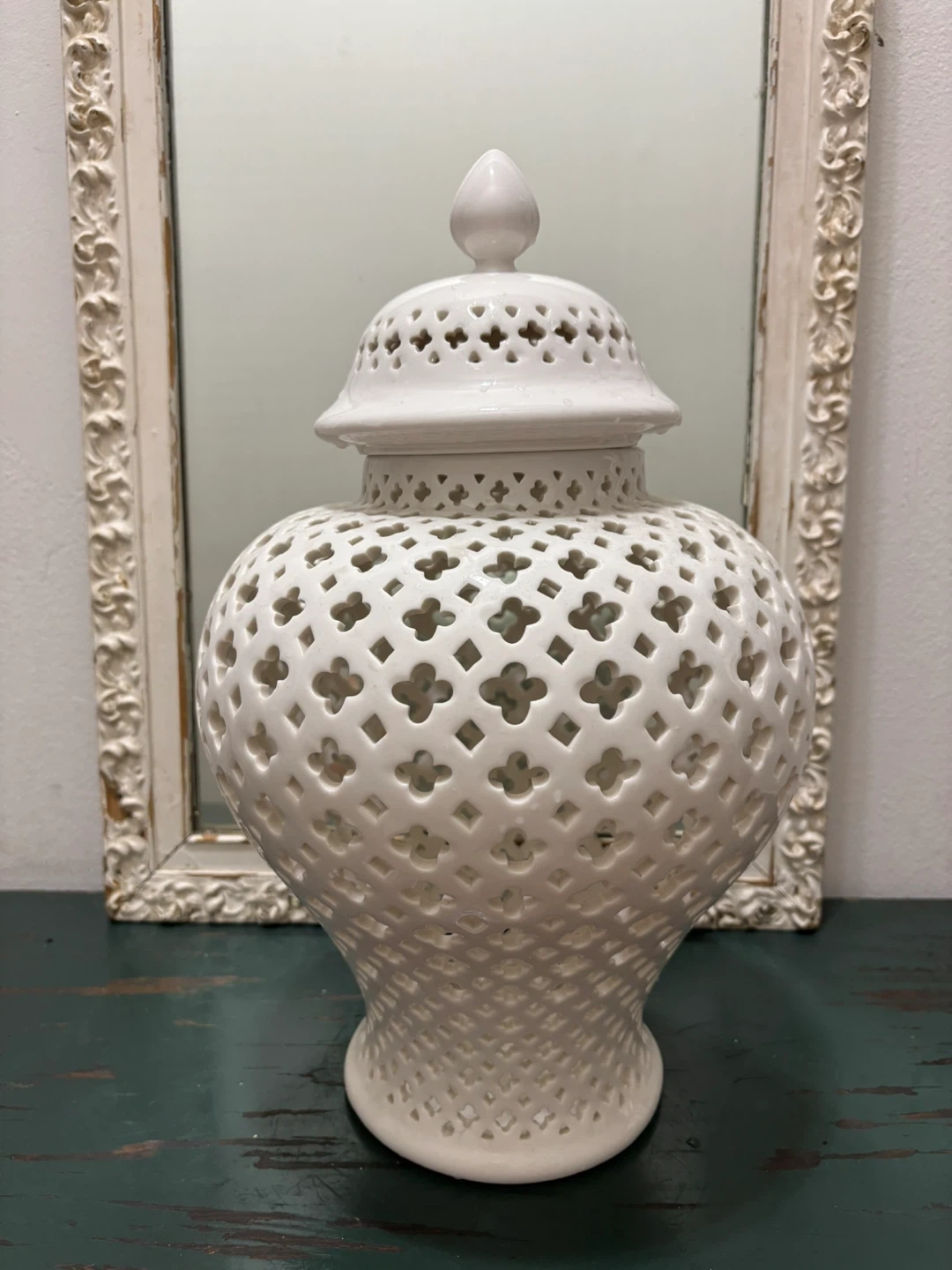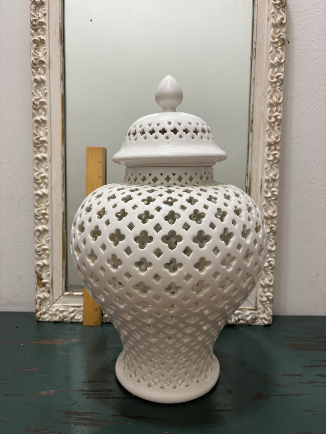 Chinoiserie-Style Latticed Porcelain Ginger Jar