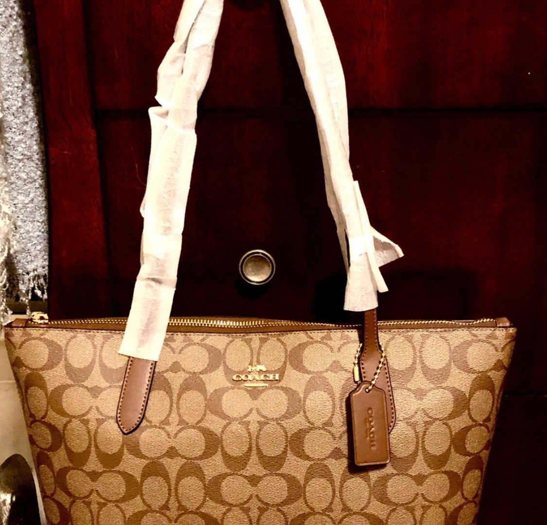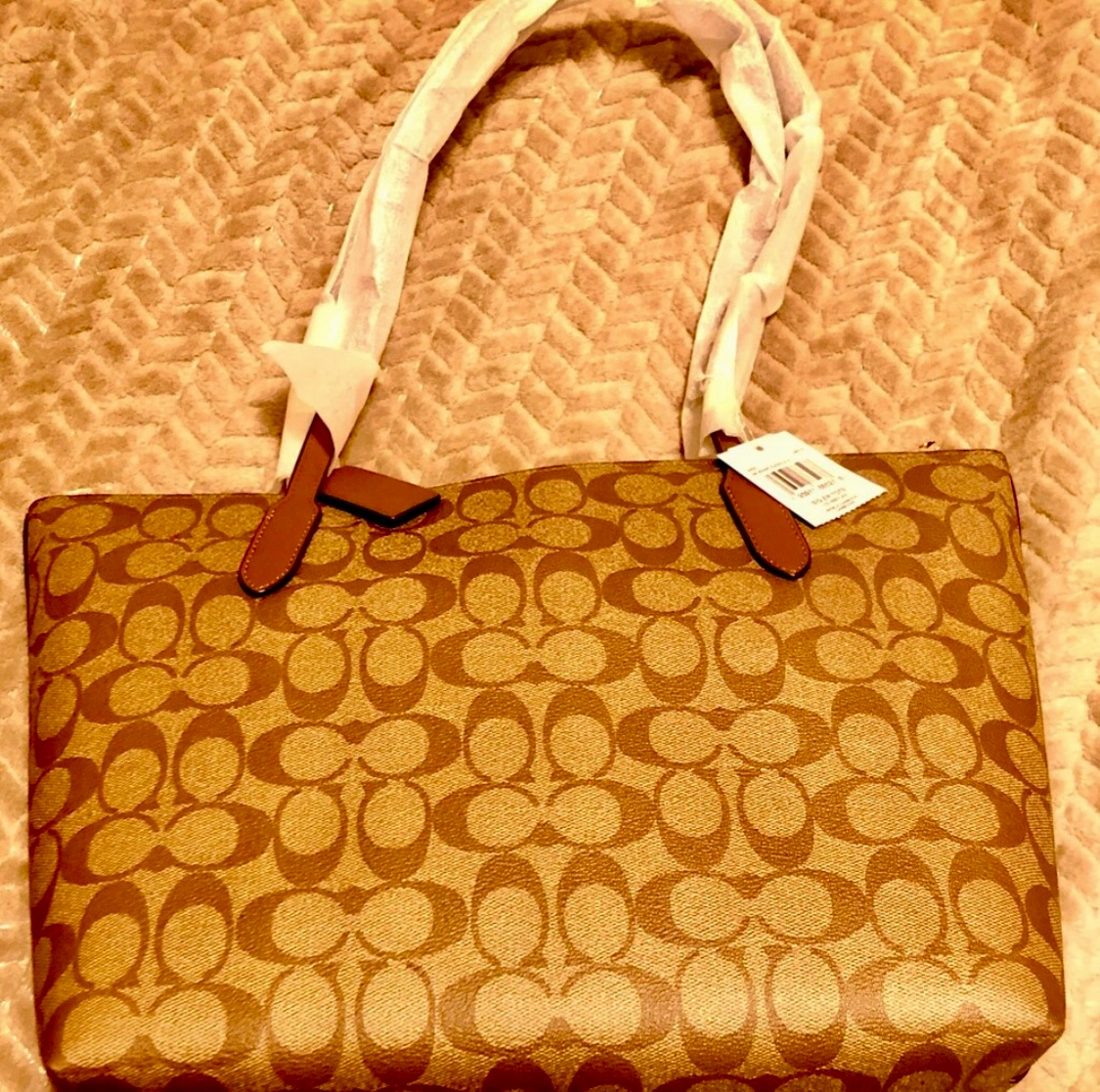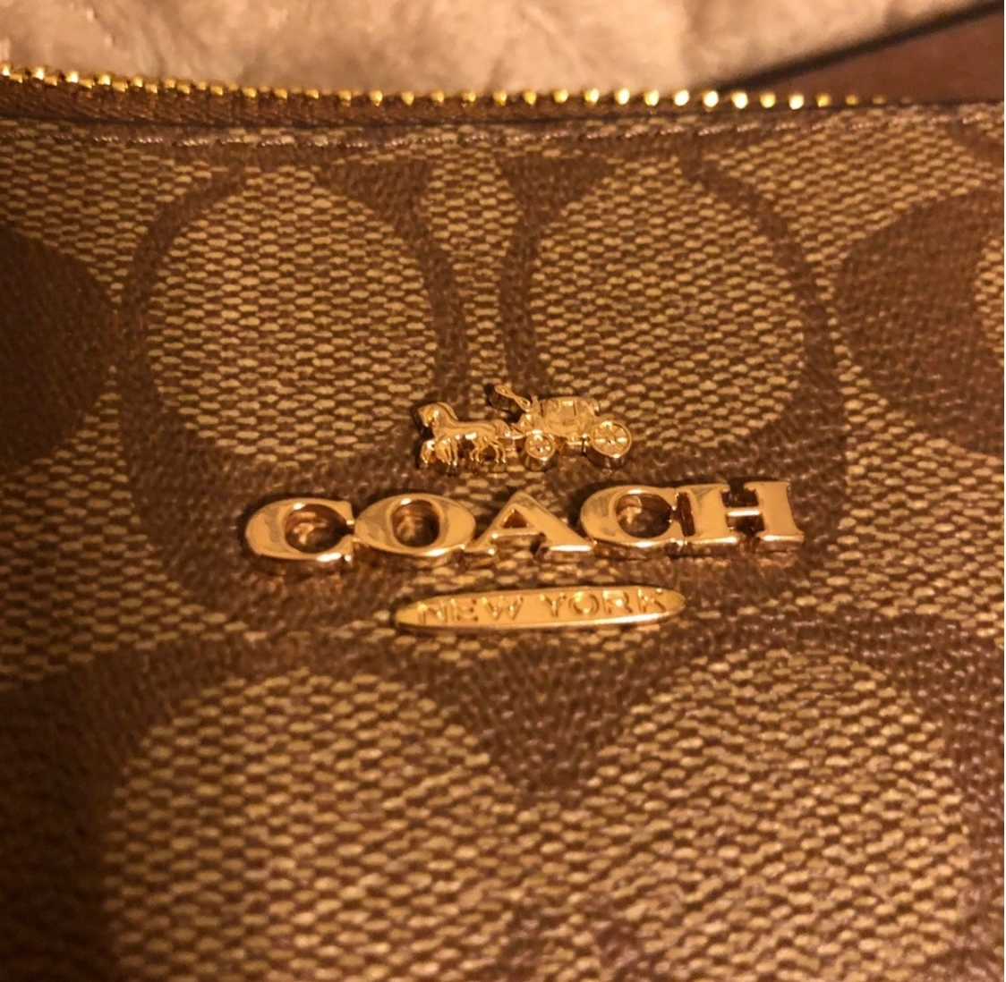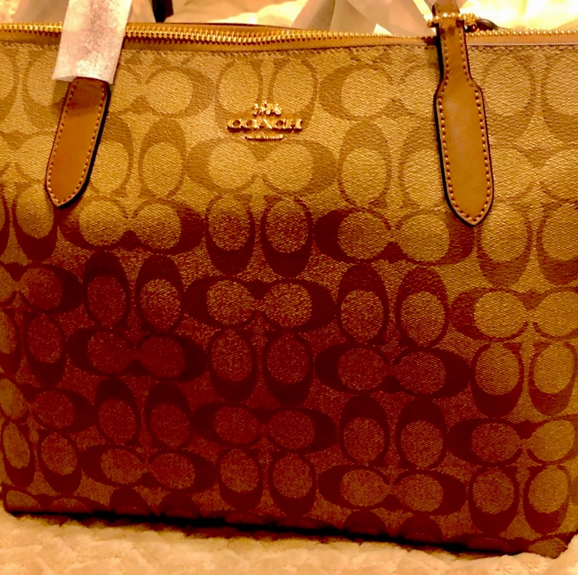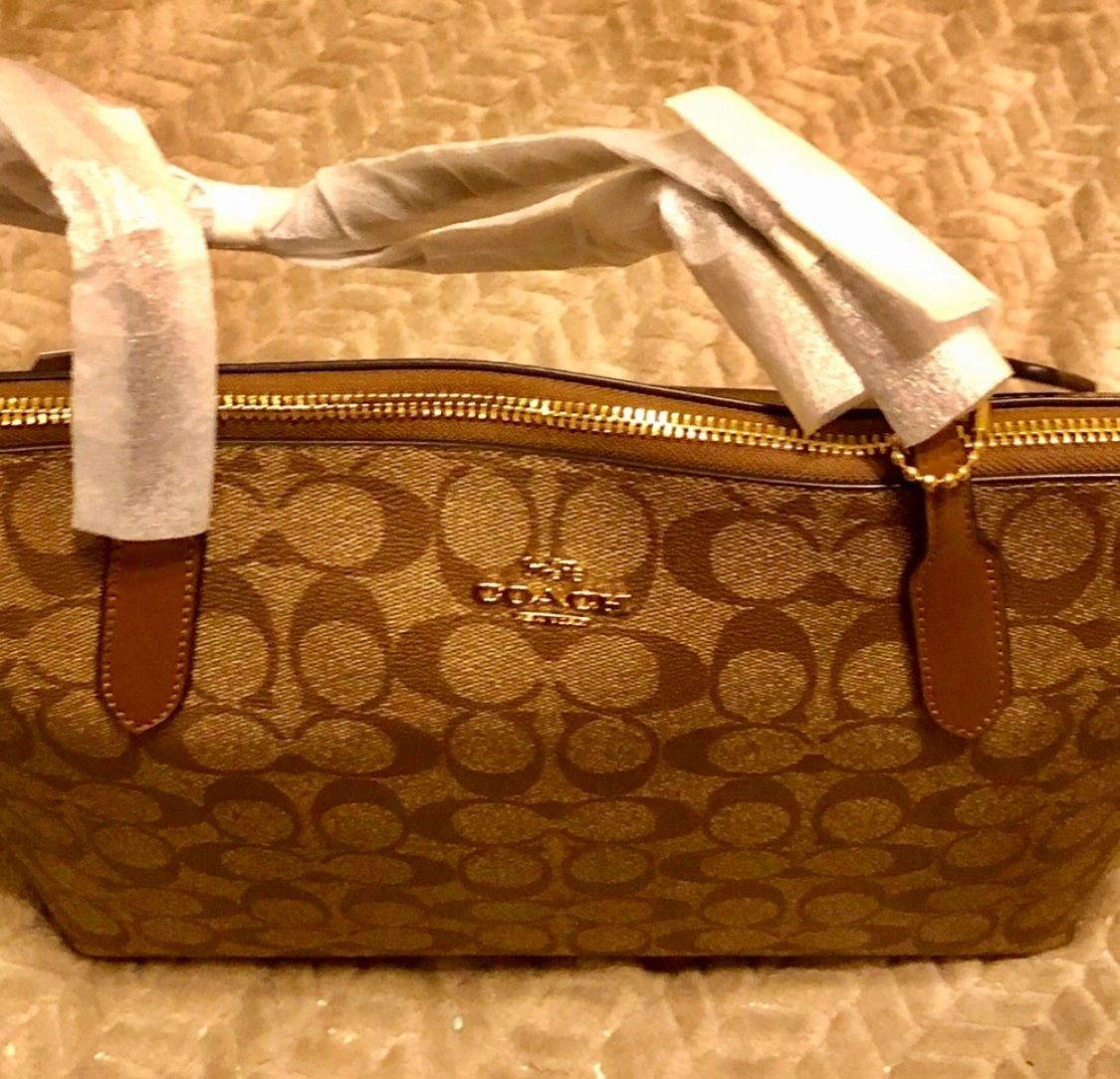 Brown Signature Coach Zip Tote Shoulder Bag.