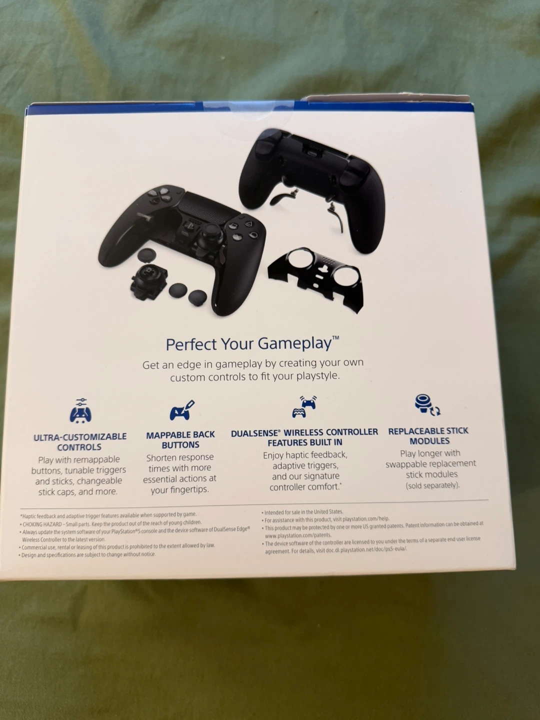 This is the DualSense Edge wireless controller for PS5. It offers ultra-customizable controls with remappable buttons and tunable triggers. It also features mappable back buttons for shorter response times and swappable, replacement stick modules.