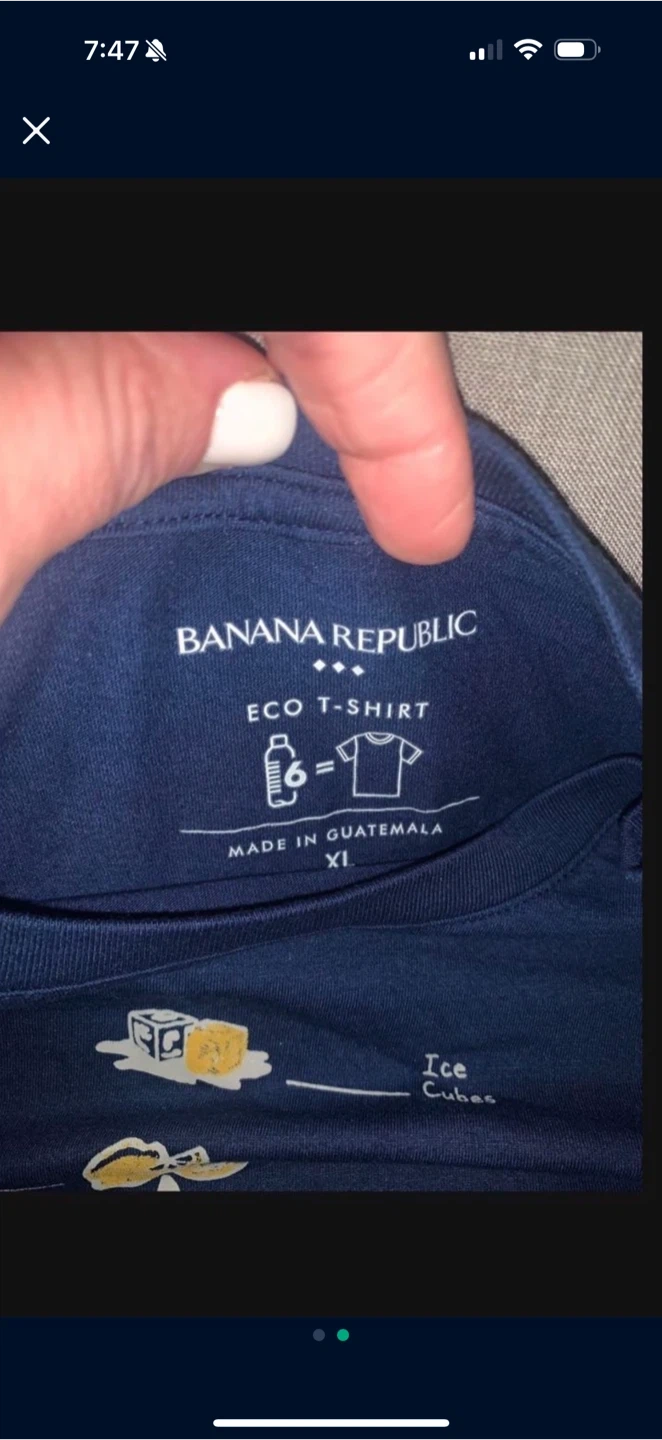 Banana Republic Eco T-Shirt in size XL. It's a navy blue color with a fun ice cube graphic on the front. Made in Guatemala